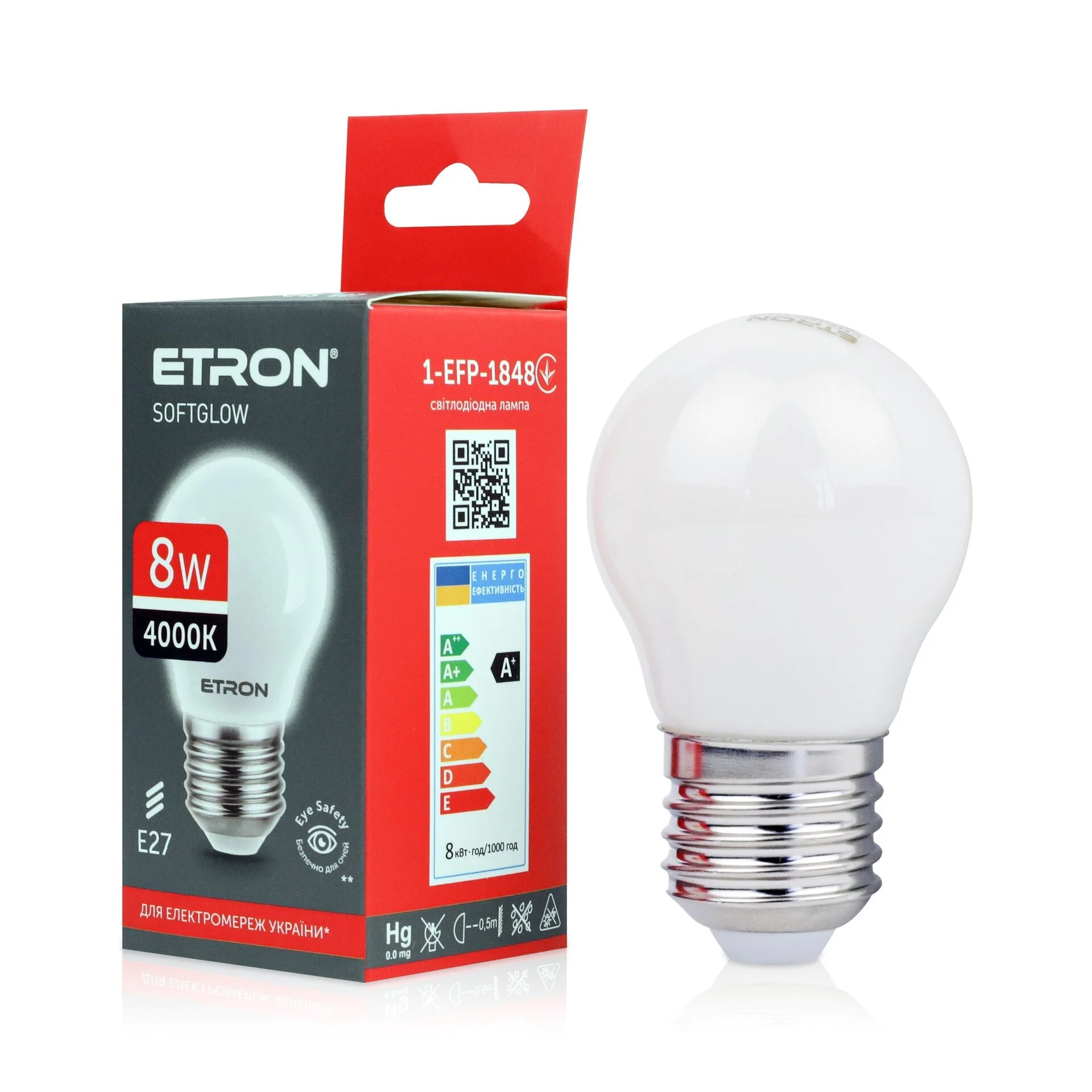 Светодиодная филаментная лампа ETRON SoftGlow G45 8W 4000K E27 матовая колба