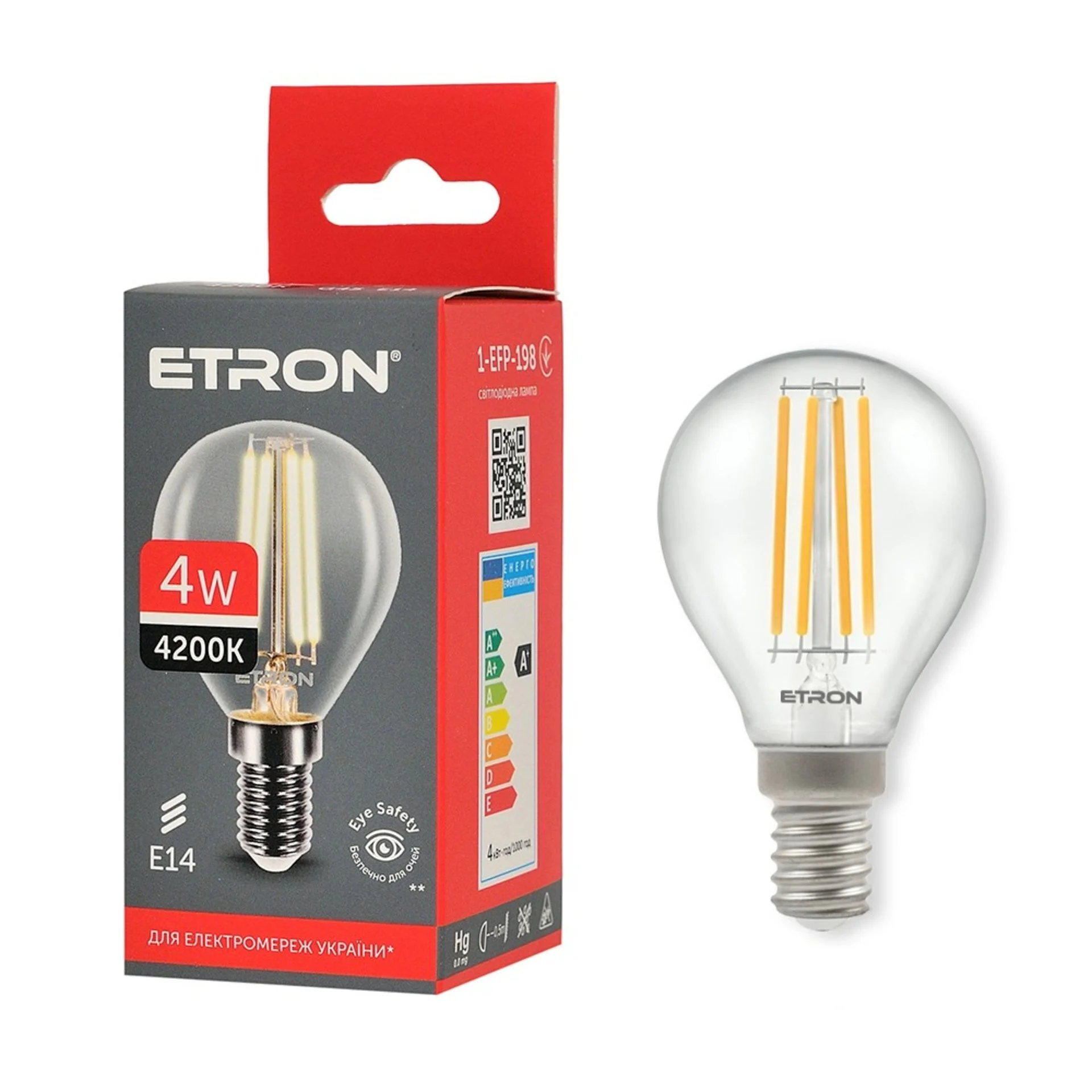 Светодиодная филаментная лампа ETRON 4W 4200K G45 E14 прозрачная создаёт яркий нейтральный свет, идеально подходящий для внутреннего освещения жилых помещений, таких как кухни, рабочие кабинеты и гостиные. Благодаря цоколю E14 она подходит для компактных светильников, бра и люстр.