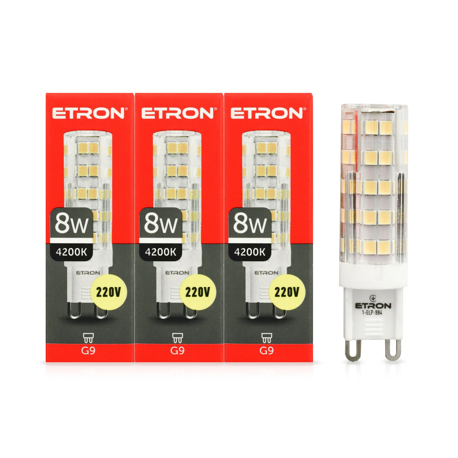 ETRON 1-ELP-884 — это комплект компактных светодиодных ламп с цоколем G9, предназначенных для точечных светильников, подвесов, люстр и декоративного освещения. Мощность 8 Вт обеспечивает яркость 660 лм.