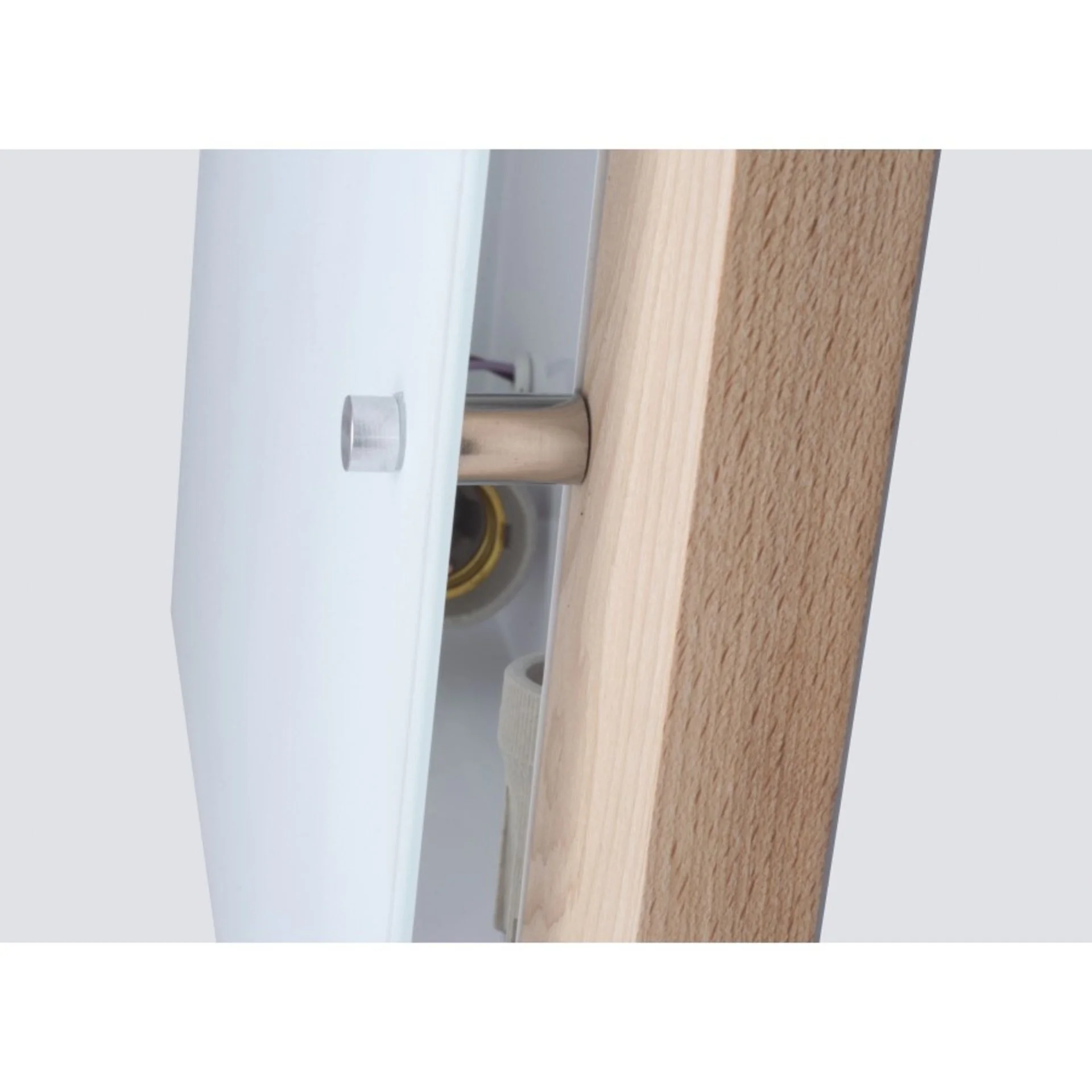 Этот светильник изготовлен из натурального бука и стекла, что обеспечивает его долговечность и природный вид. Натуральный цвет добавляет тепла и уюта, гармонично вписываясь в современные интерьеры. Стеклянный плафон обеспечивает мягкое рассеивание света, создавая приятную атмосферу.