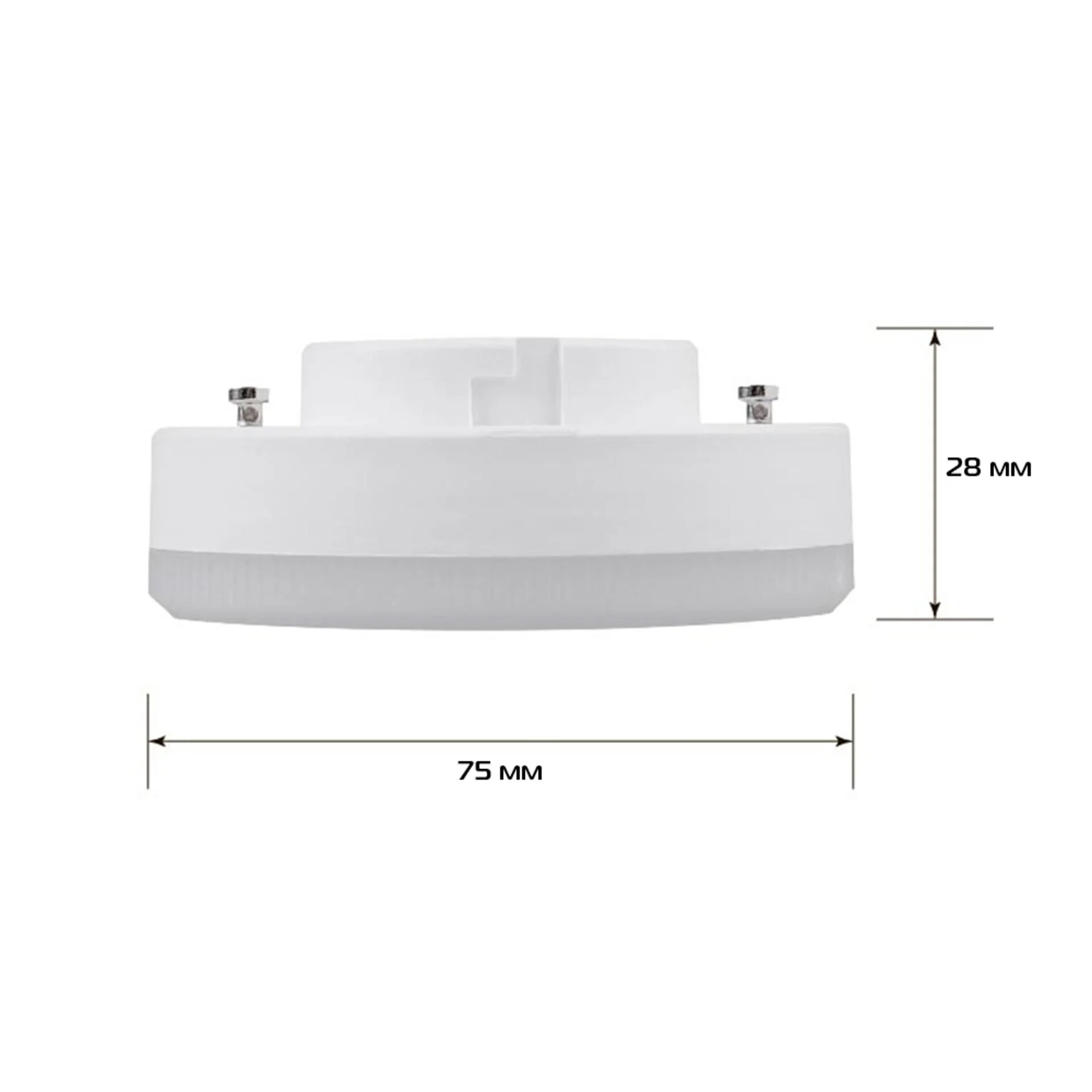 При мощности 15 Вт лампа обеспечивает стабильное яркое освещение без длительного разогрева. Плоский формат корпуса делает её удобной для установки в светильники GX53, включая накладные и встраиваемые модели. Компактные габариты 75×28 мм позволяют аккуратно установить лампу даже в светоточки с ограниченной глубиной.