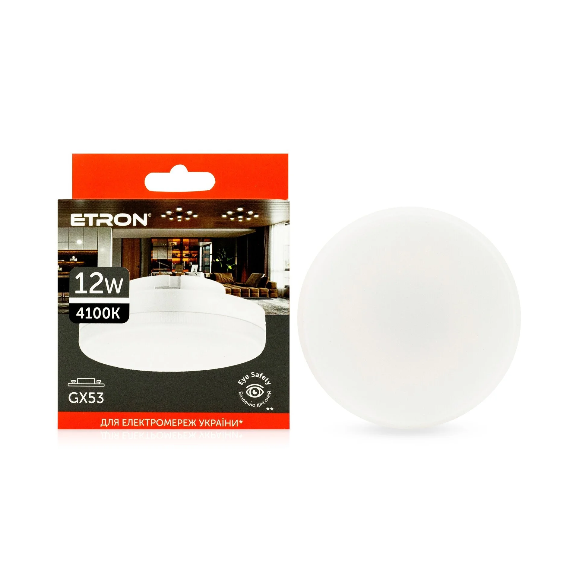 ETRON 1-ELP-814 GX53 12W — практичный выбор для дома, офиса, магазинов, ресторанов и гостиниц.