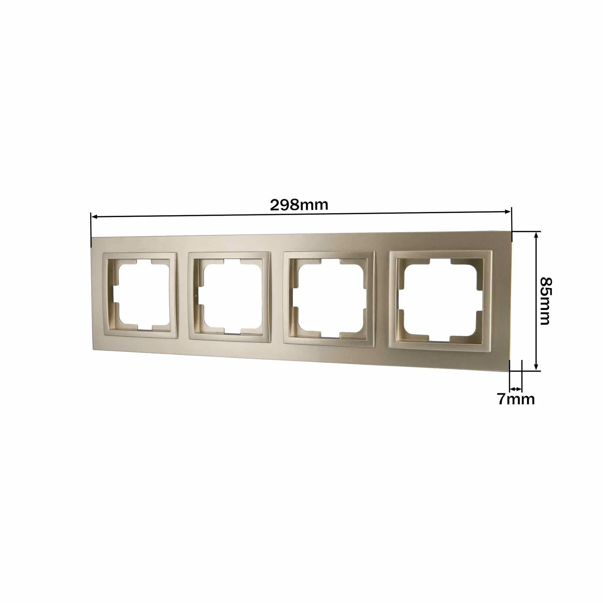 Mono Electric DESPINA – это стильная и функциональная четырехместная рамка для установки четырех розеток или выключателей в одном блоке. Титановый цвет и минималистичный дизайн делают её идеальным дополнением к современному интерьеру вашего помещения.