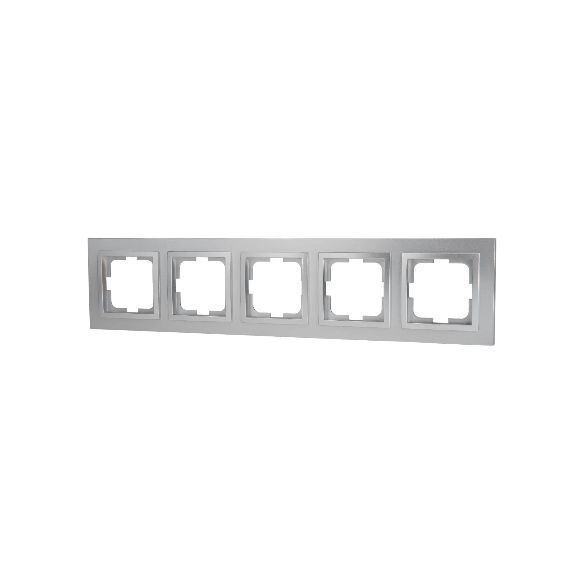 Mono Electric DESPINA – это стильная и функциональная пятиместная рамка для установки пяти розеток или выключателей в одном блоке. Ее серебристый цвет и минималистичный дизайн идеально сочетаются с современными интерьерами, придавая им элегантности.