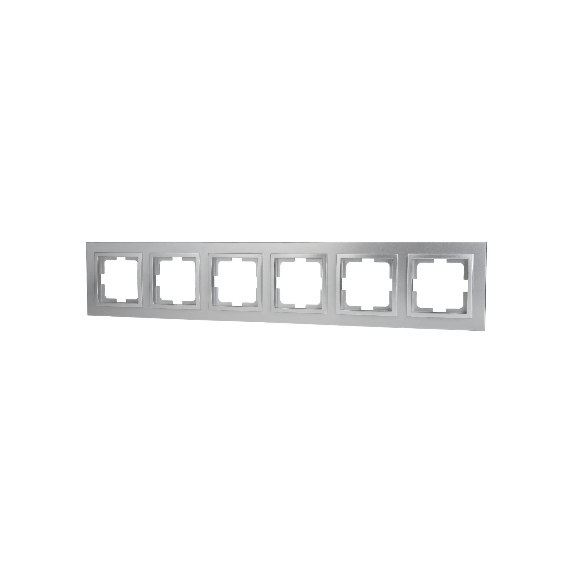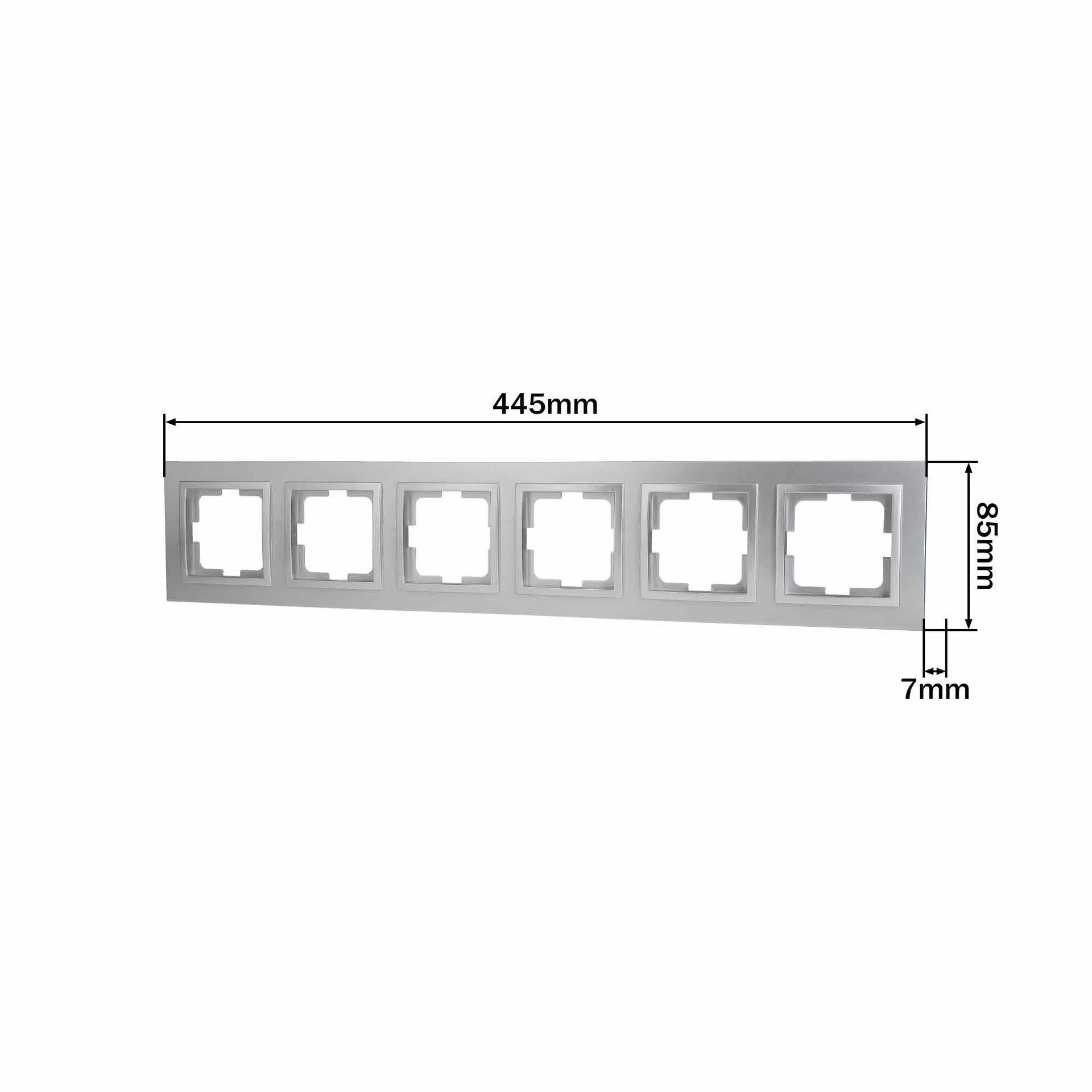 Mono Electric DESPINA – это элегантная шестиместная рамка для установки шести розеток или выключателей в одном блоке. Серебристый цвет и минималистичный дизайн придают ей стильность, что делает её идеальным дополнением для современного интерьера.