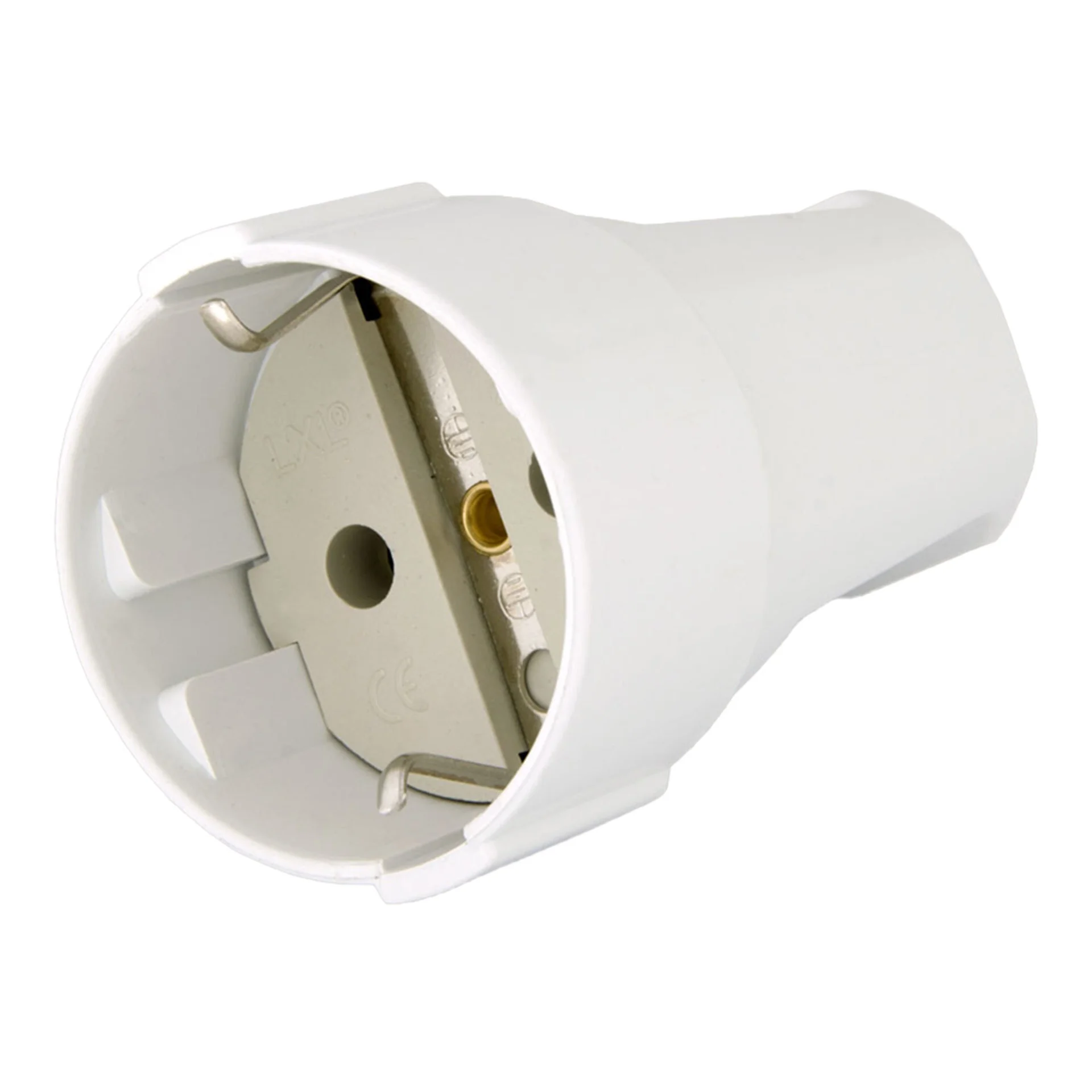 Розетка гнездо штепсельное переносное с заземлением 131 LXL белого цвета – это надёжное решение для безопасного подключения бытовых электроприборов. Благодаря заземляющему контакту эта розетка обеспечивает дополнительный уровень безопасности при эксплуатации электрооборудования.