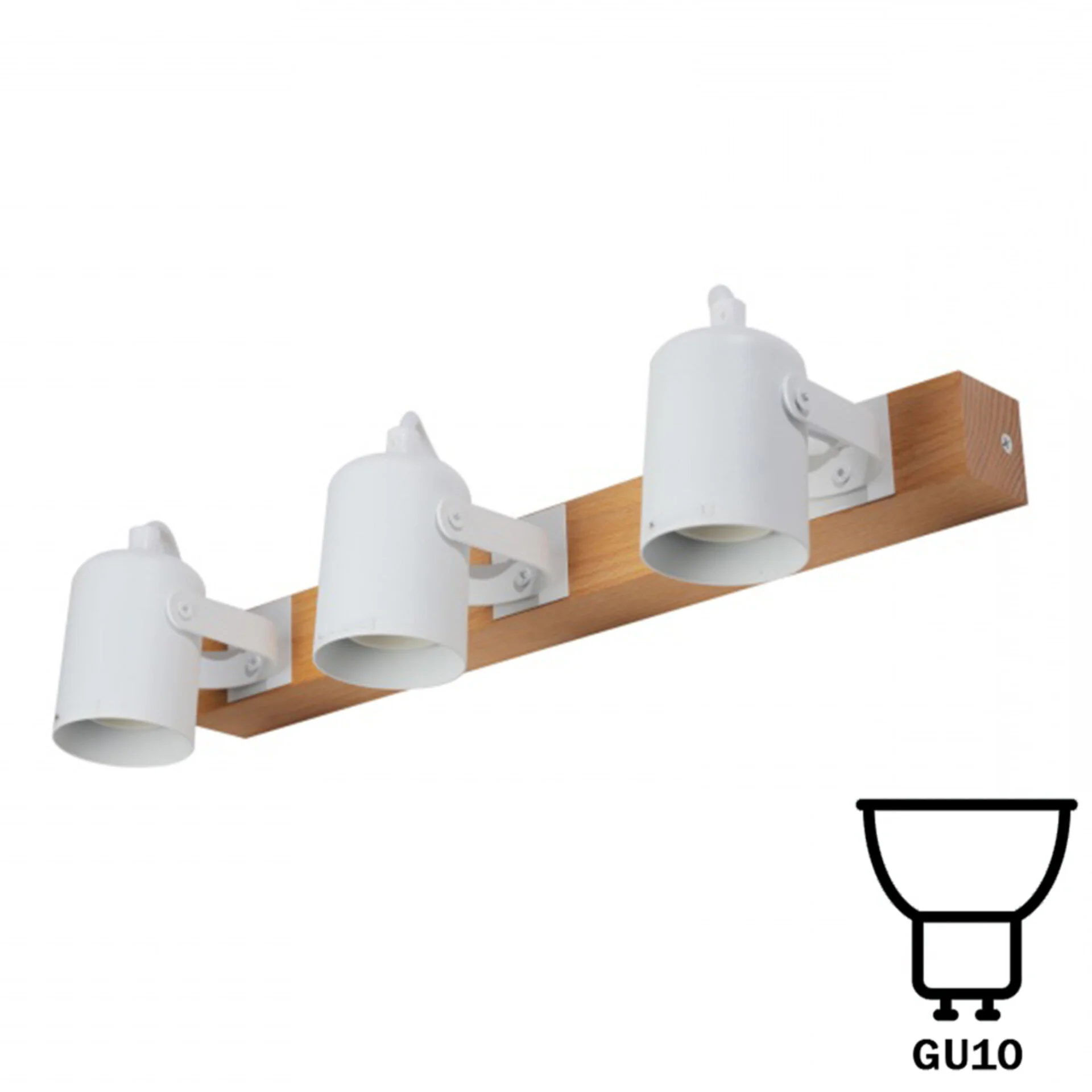 Корпус изготовлен из натурального дерева и прочного металла, что придает светильнику современный вид и обеспечивает его долговечность. Светильник работает с лампами GU10, которые легко заменять, что делает его удобным в использовании.