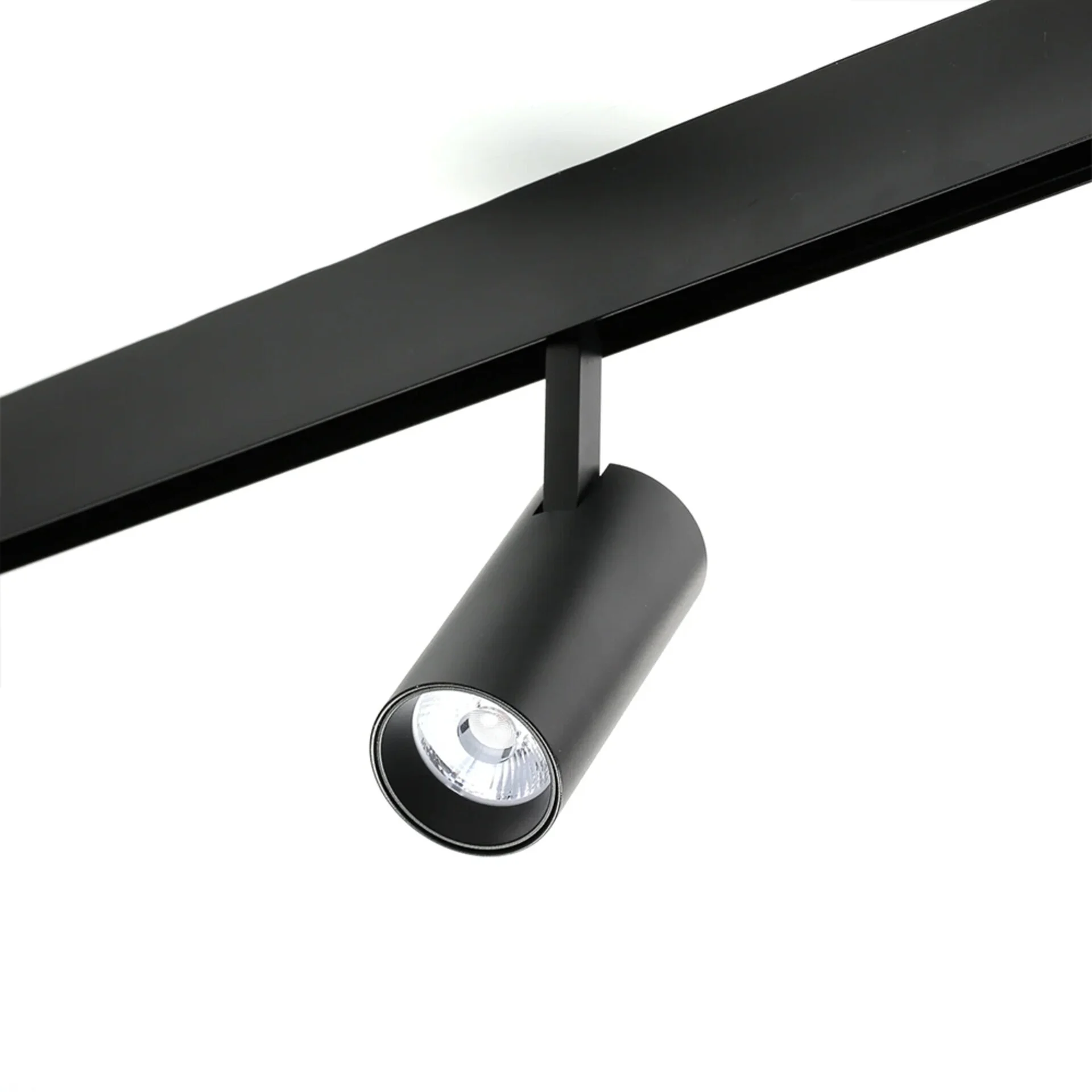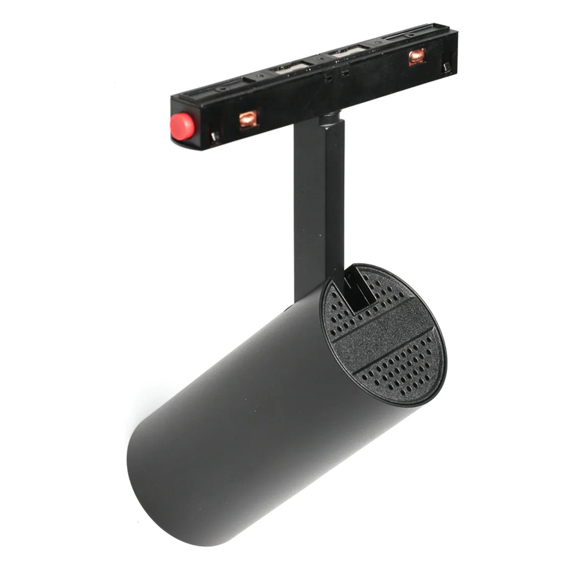 Корпус из алюминия и пластика делает светильник лёгким и в то же время устойчивым. Простота монтажа на магнитный шинопровод позволяет легко изменять освещение в зависимости от потребностей пространства — будь то выставка, офис или витрина.