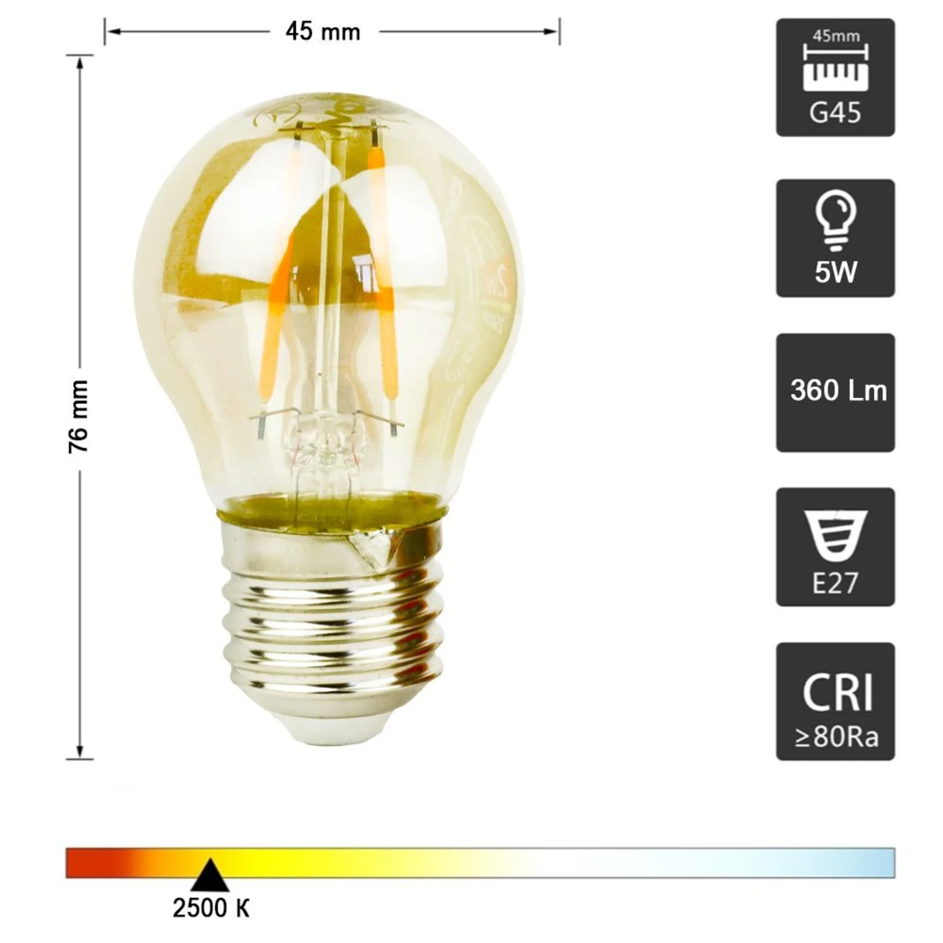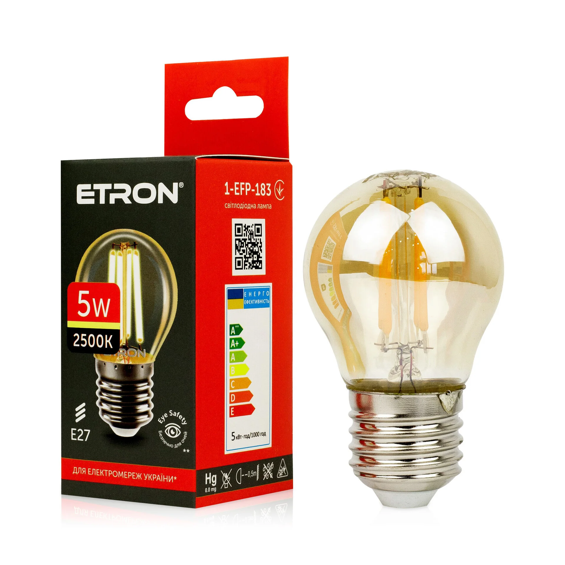 Світлодіодна філаментна лампа ETRON Filament G45 5W E27 2500K золото призначена для внутрішнього освітлення житлових приміщень та використання в зовнішніх освітлювальних приладах (за відповідним ступенем захисту). Завдяки технології LED Filament, ця лампа забезпечує чудовий світловий потік із мінімальними витратами електроенергії та виділяє дуже мало тепла.