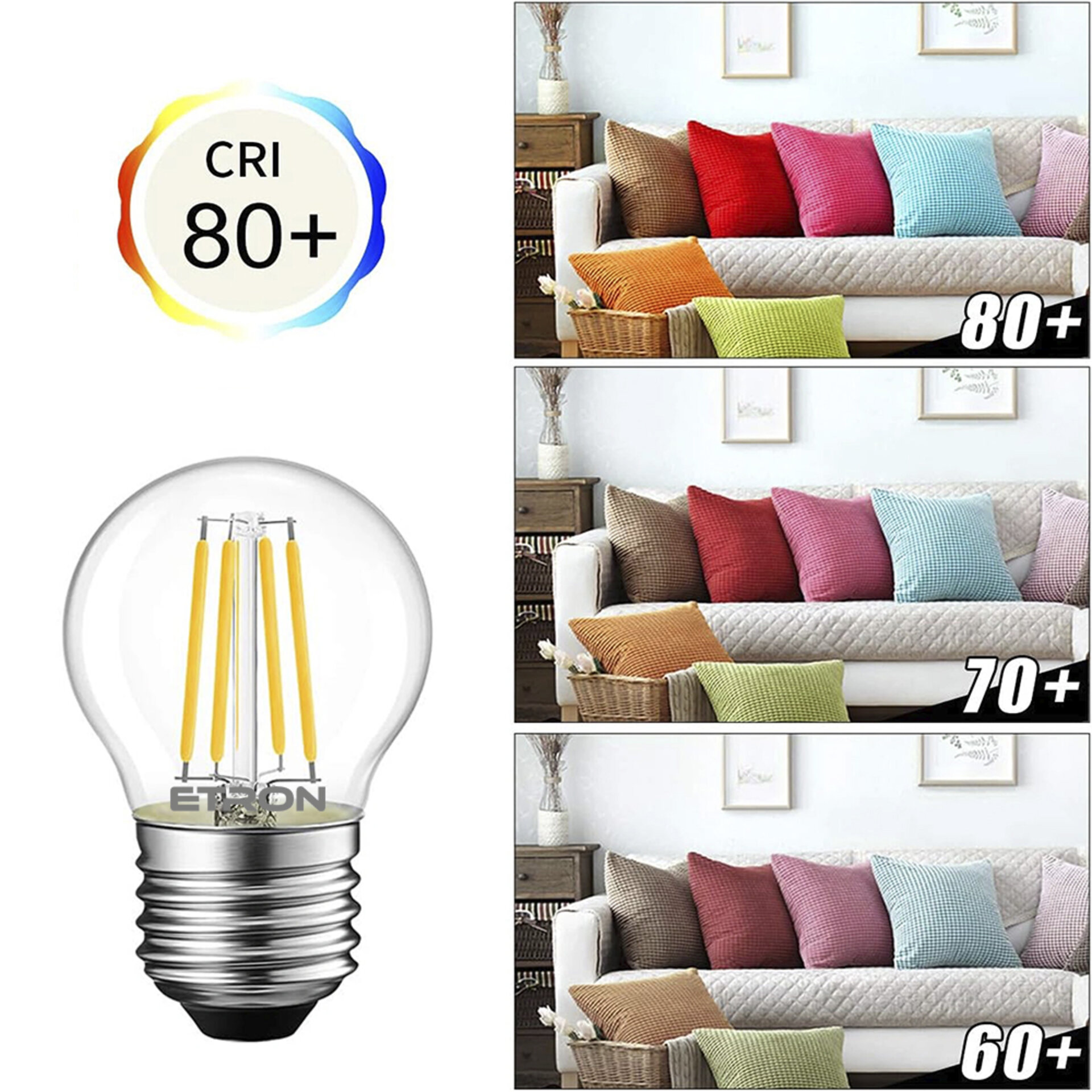 ETRON 1-EFP-2351 — компактна філаментна LED лампа G45 E27 8 Вт із теплим світлом 3000 К та підтримкою димування. Прозора колба-«куля» забезпечує рівномірне свічення на 330°, а акуратна естетика «ретро Едісона» гармонійно виглядає у відкритих плафонах,вуличних гірляндах, бра та люстрах для дому чи HoReCa. Світловий потік 685 лм створює комфортну яскравість для щоденного освітлення.