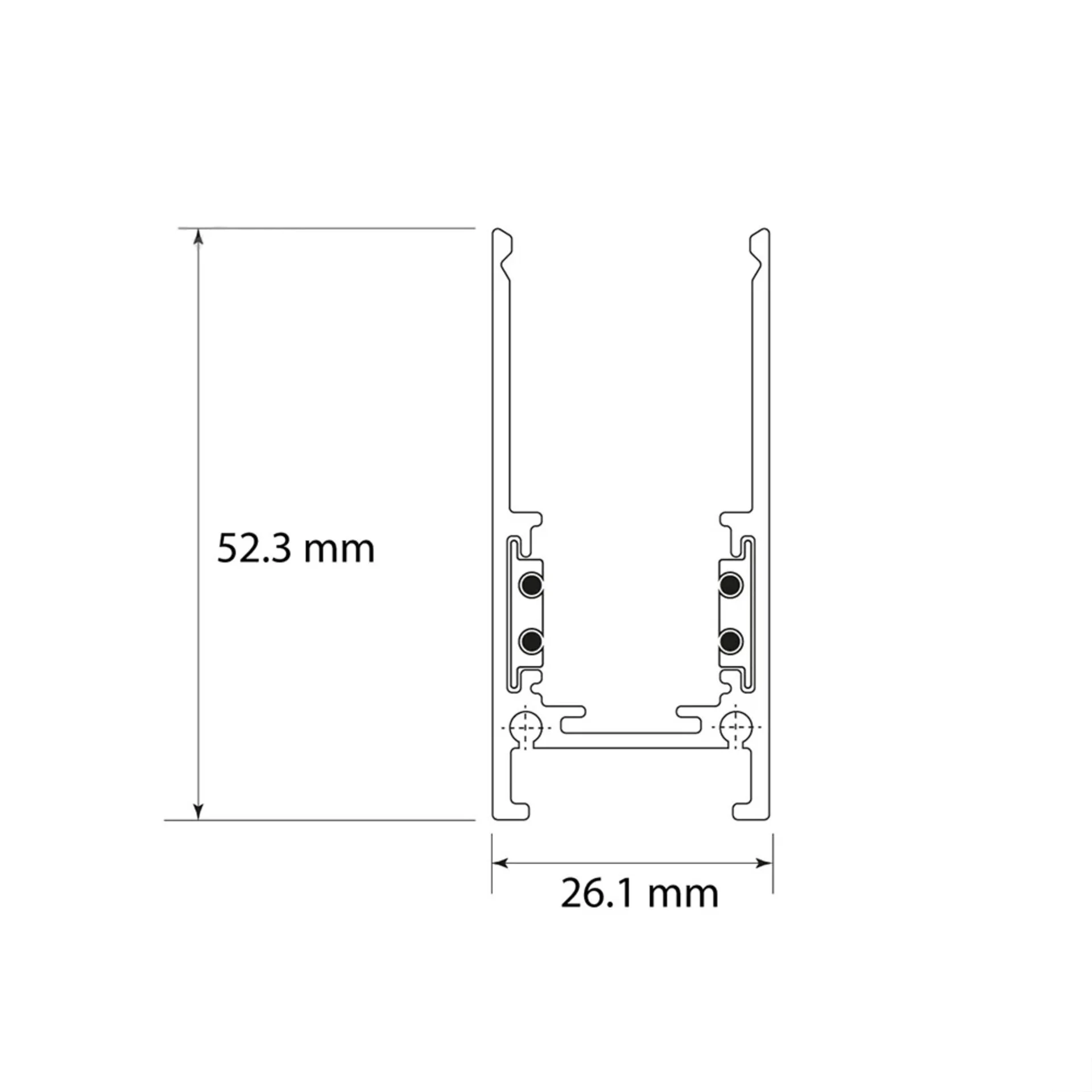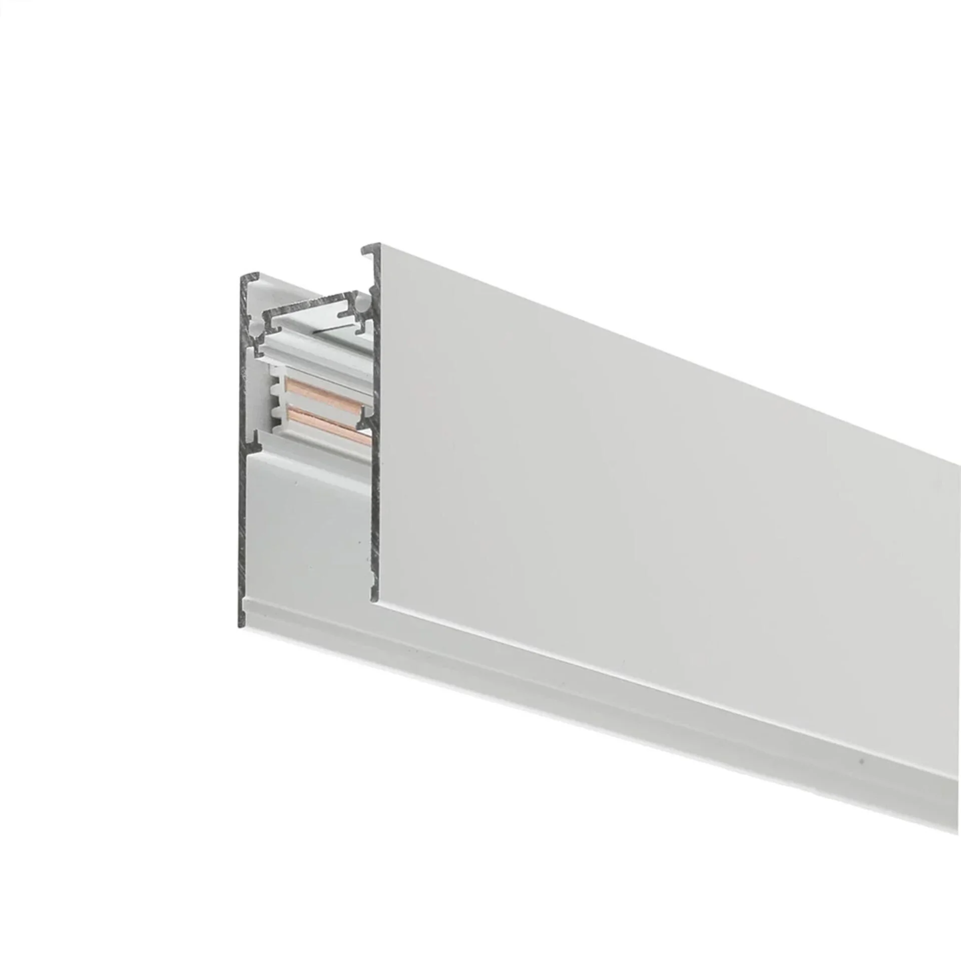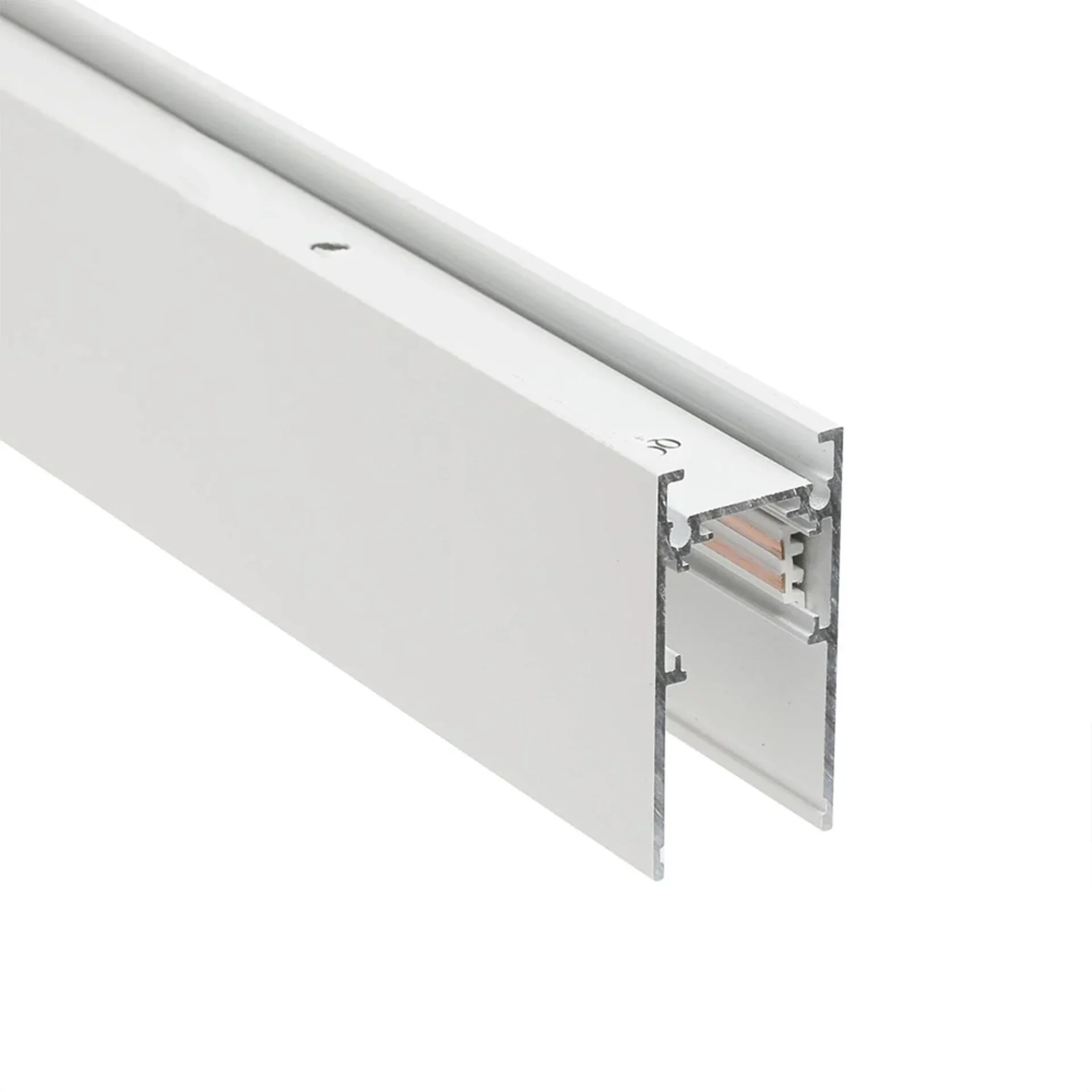Корпус з алюмінію поєднує легкість і міцність. Біле покриття забезпечує універсальність у використанні — шинопровід непомітно інтегрується в стелю або стіни, зберігаючи чистий вигляд приміщення.