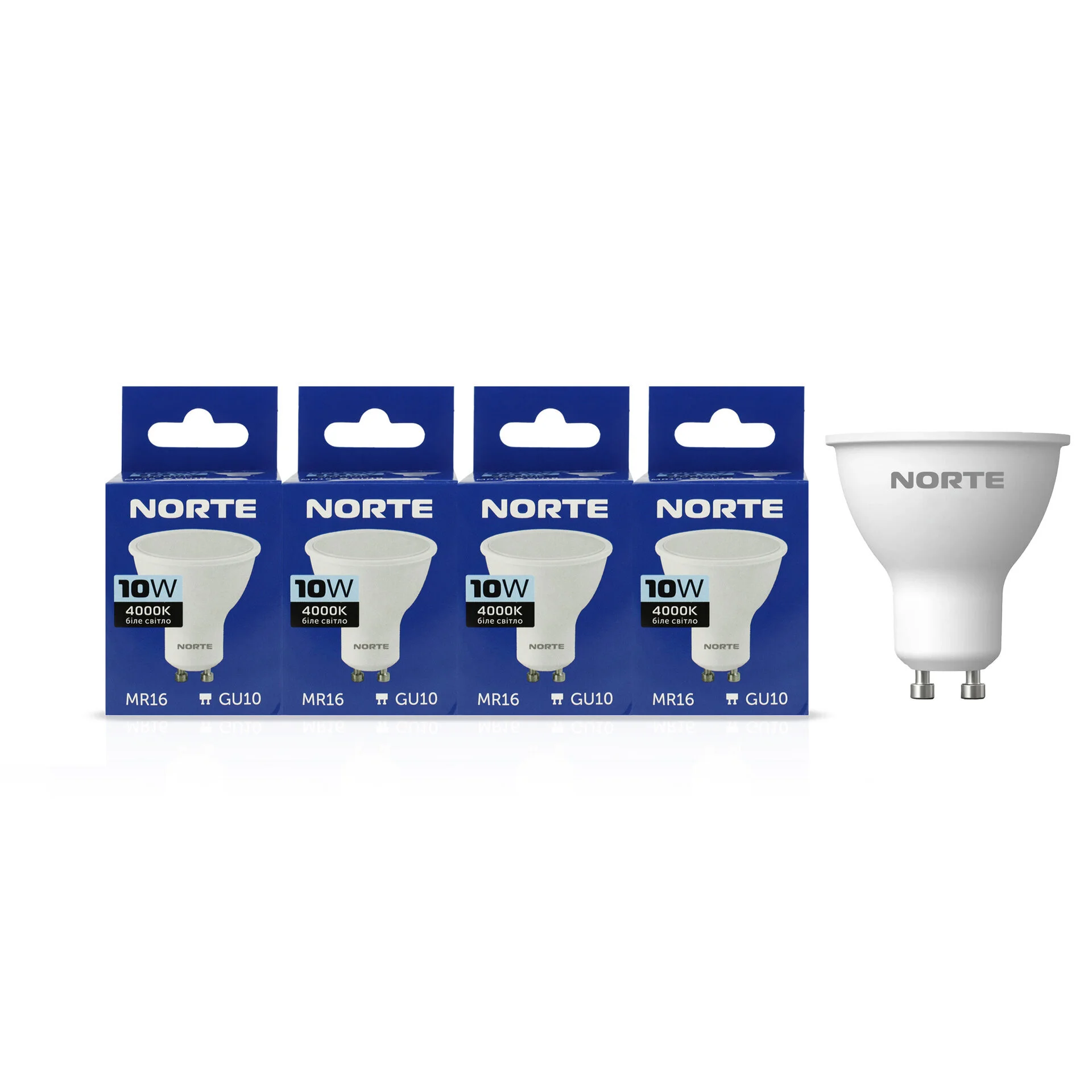 Світлодіодні лампи NORTE MR16 10Вт із цоколем GU10 — ідеальний вибір для акцентного, точкового або загального освітлення. Завдяки формі MR16 і стандартному роз'єму GU10, лампи легко встановлюються в більшість сучасних світильників.