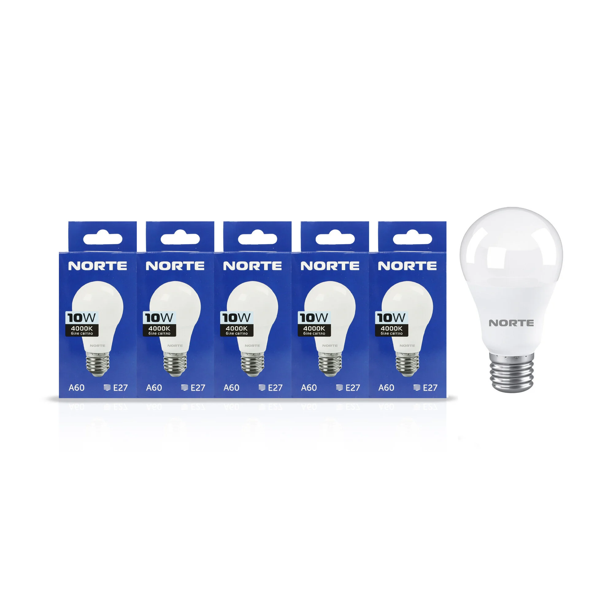 NORTE 1-NLP-1708 — це набір із 5 економічних світлодіодних ламп у класичному форматі A60 з універсальним цоколем E27. Ідеально підходять для основного освітлення в побутових приміщеннях, офісах, магазинах та інших інтер'єрах.