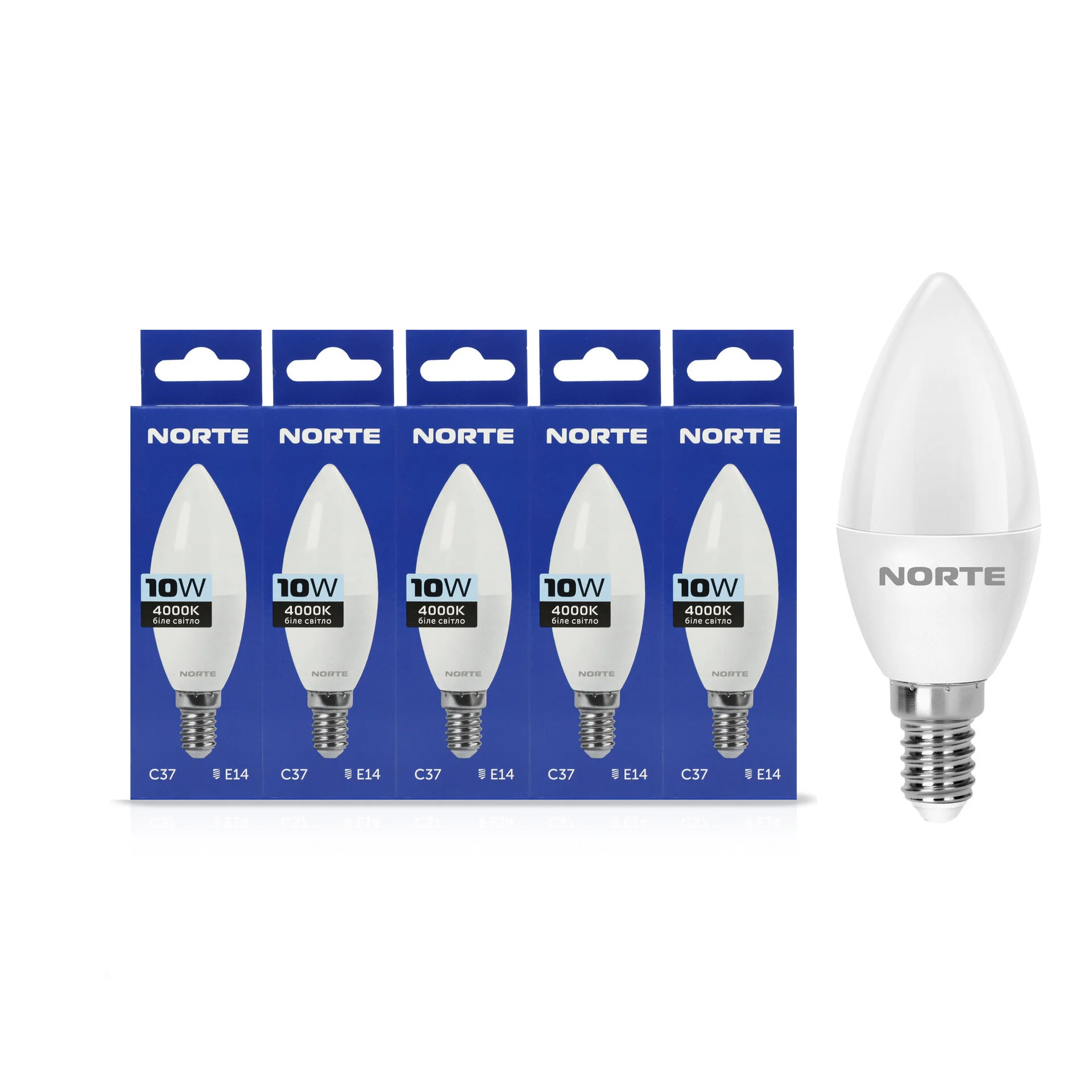Світлодіодні лампи NORTE C37 10Вт — це надійний вибір для тих, хто шукає якісне біле світло і стабільну роботу за помірну ціну. Завдяки формі свічки C37 і компактним розмірам, лампи підходять до різних типів світильників — люстр, бра, настільних ламп тощо.
