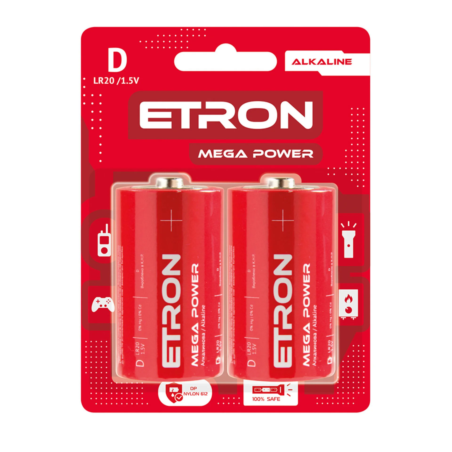 Батарейки ETRON Mega Power D (LR20) — це потужне та надійне рішення для живлення ваших пристроїв із високим енергоспоживанням. Ці батарейки типу D (LR20) розроблені з використанням передових лужних технологій, що забезпечують стабільну роботу та тривалий термін служби. Вони ідеально підходять для використання у побутових та офісних пристроях, таких як ліхтарики, радіоприймачі, іграшки та інші прилади, що потребують значного запасу енергії.