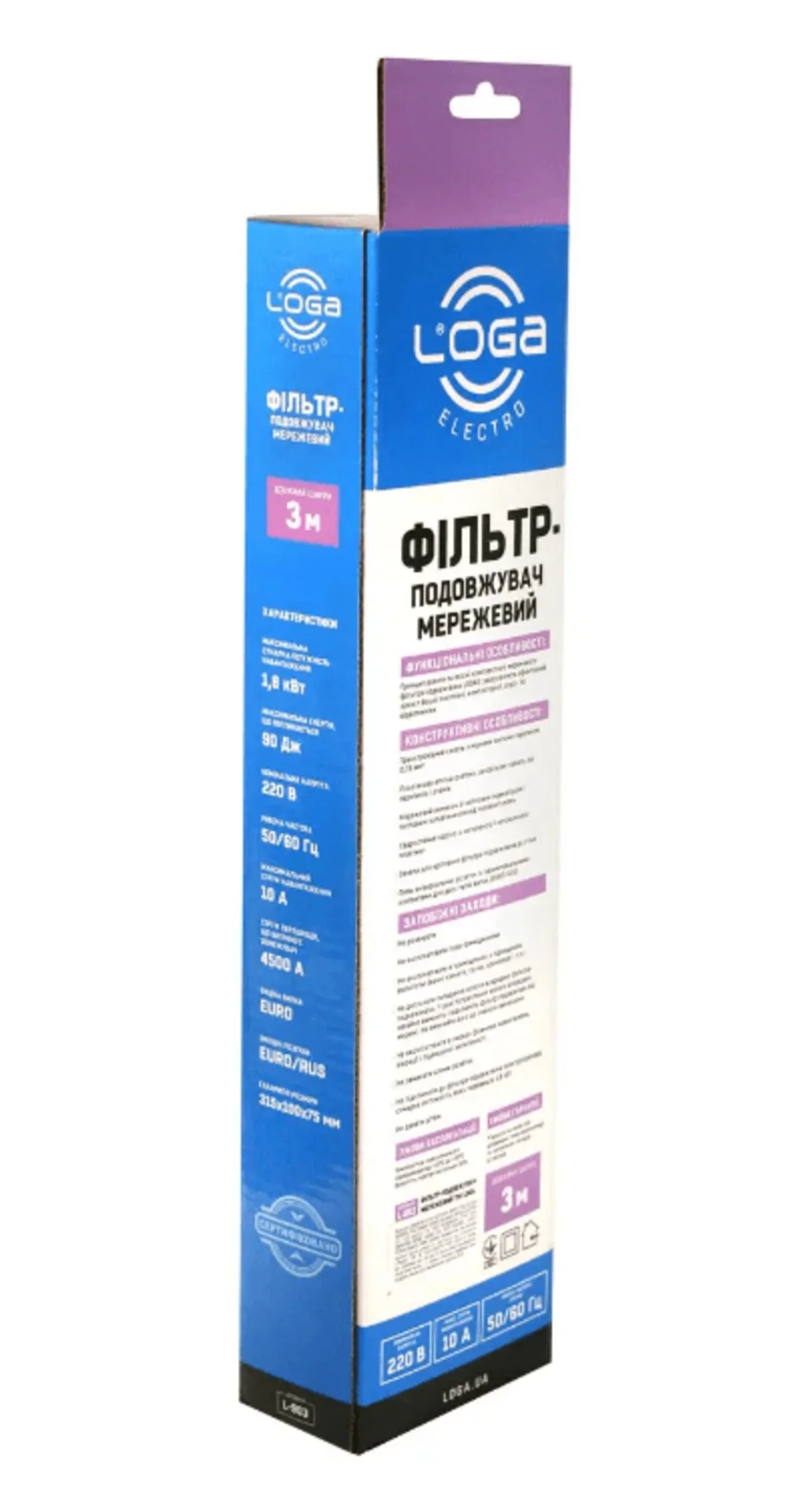 Мережевий фільтр-подовжувач LOGA – це зручний пристрій для підключення та розширення можливостей живлення побутової, комп’ютерної, аудіо- та відеотехніки. Завдяки якісним комплектуючим він забезпечує базовий захист від перевантажень та механічних пошкоджень, але не розрахований на захист від перепадів напруги.