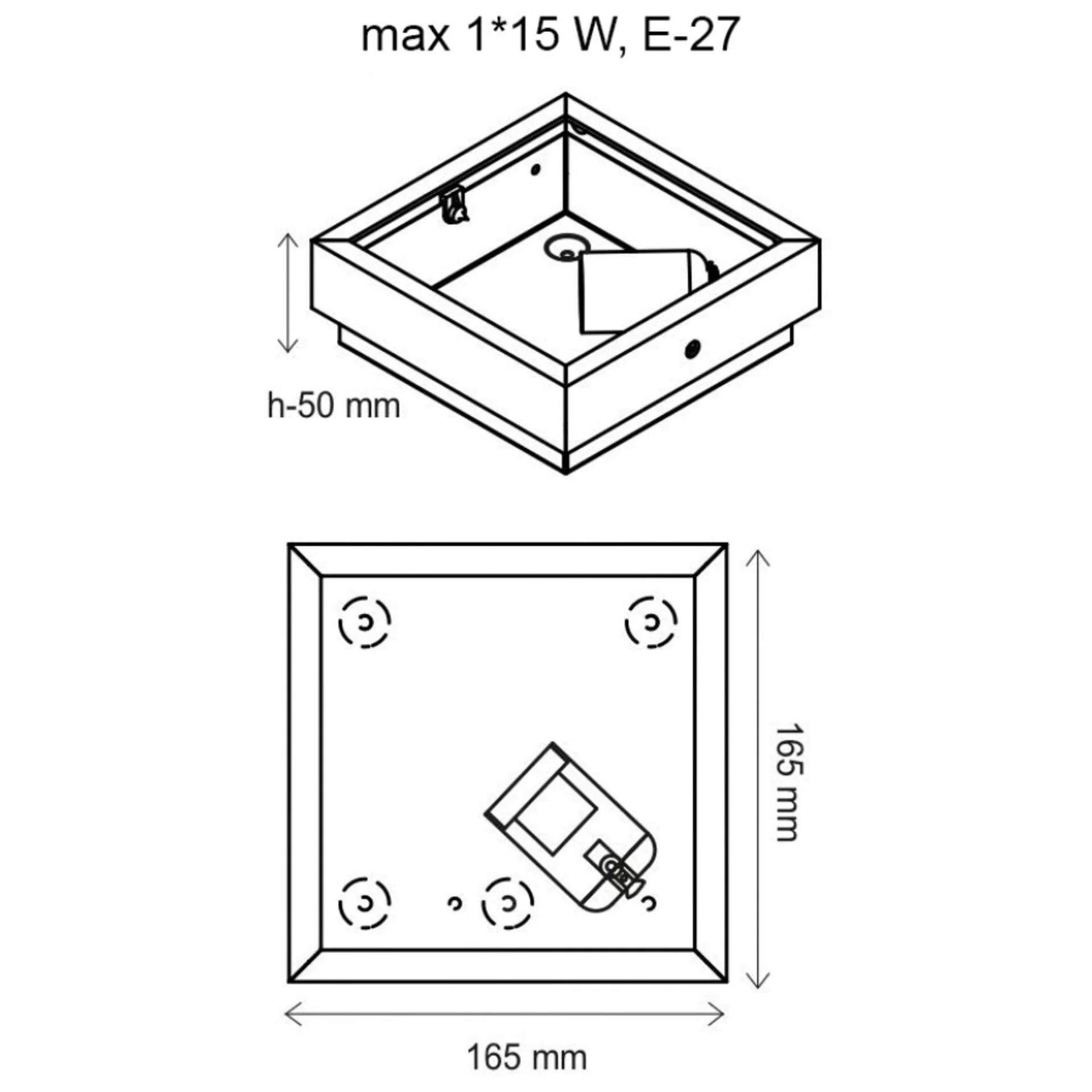 Компактні розміри світильника (50 мм висота, 160 мм довжина і ширина) дозволяють використовувати його в приміщеннях різного розміру. Його накладний тип монтажу забезпечує легкість встановлення, а спрямованість світла в бік і вниз дозволяє створювати комфортне освітлення в потрібних зонах.