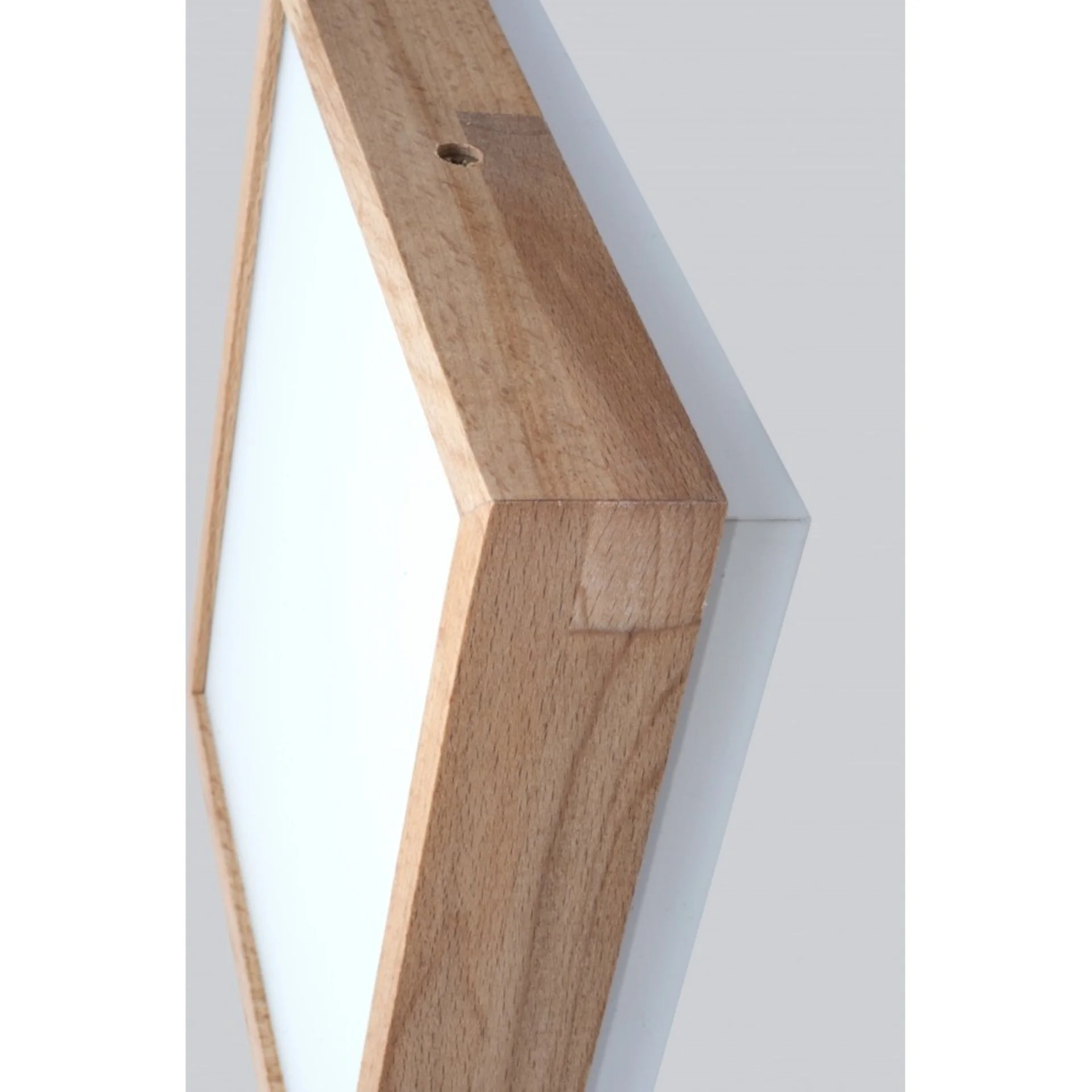 Світильник виготовлений із високоякісних матеріалів. Скляний плафон забезпечує рівномірне розсіювання світла, а каркас із натурального бука додає природності й естетичності. Натуральний колір світильника підкреслює природний стиль та універсальність, роблячи його гармонійним вибором для будь-якого інтер’єру.