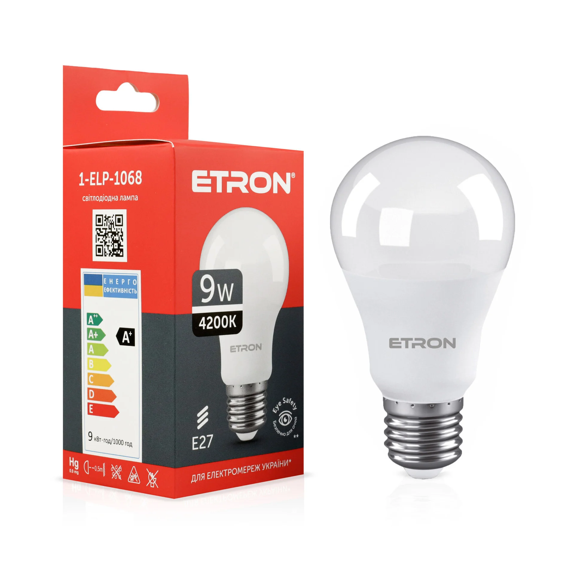 Світлодіодна LED лампа ETRON A60 9W 4200K створює яскраве денне світло, яке ідеально підходить для освітлення житлових приміщень, офісів, кухонь, ванних кімнат та робочих зон. Завдяки потужності 9W та цоколю E27, ця лампа легко встановлюється у більшість світильників, забезпечуючи високу яскравість при низькому енергоспоживанні.