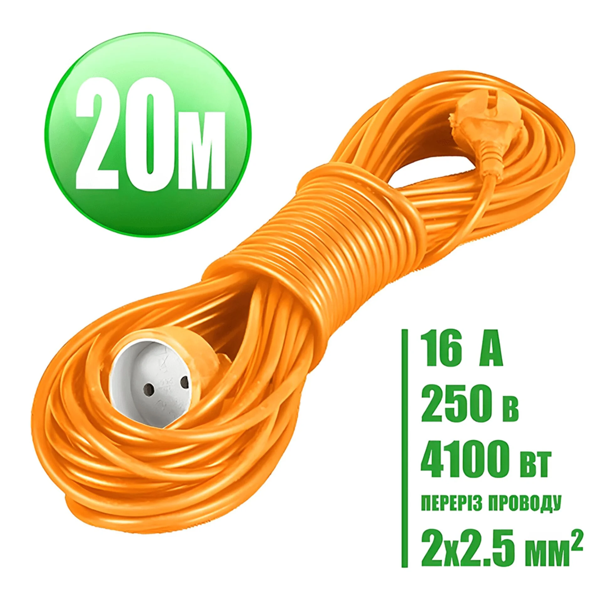 Подовжувач-переноска довжиною 20 метрів – це надійне рішення для підключення електроприладів на значній відстані під час будівельних, садових чи інших побутових робіт. Завдяки високоякісному мідному морозостійкому кабелю ПВС подовжувач зберігає міцність і гнучкість навіть у складних умовах експлуатації.