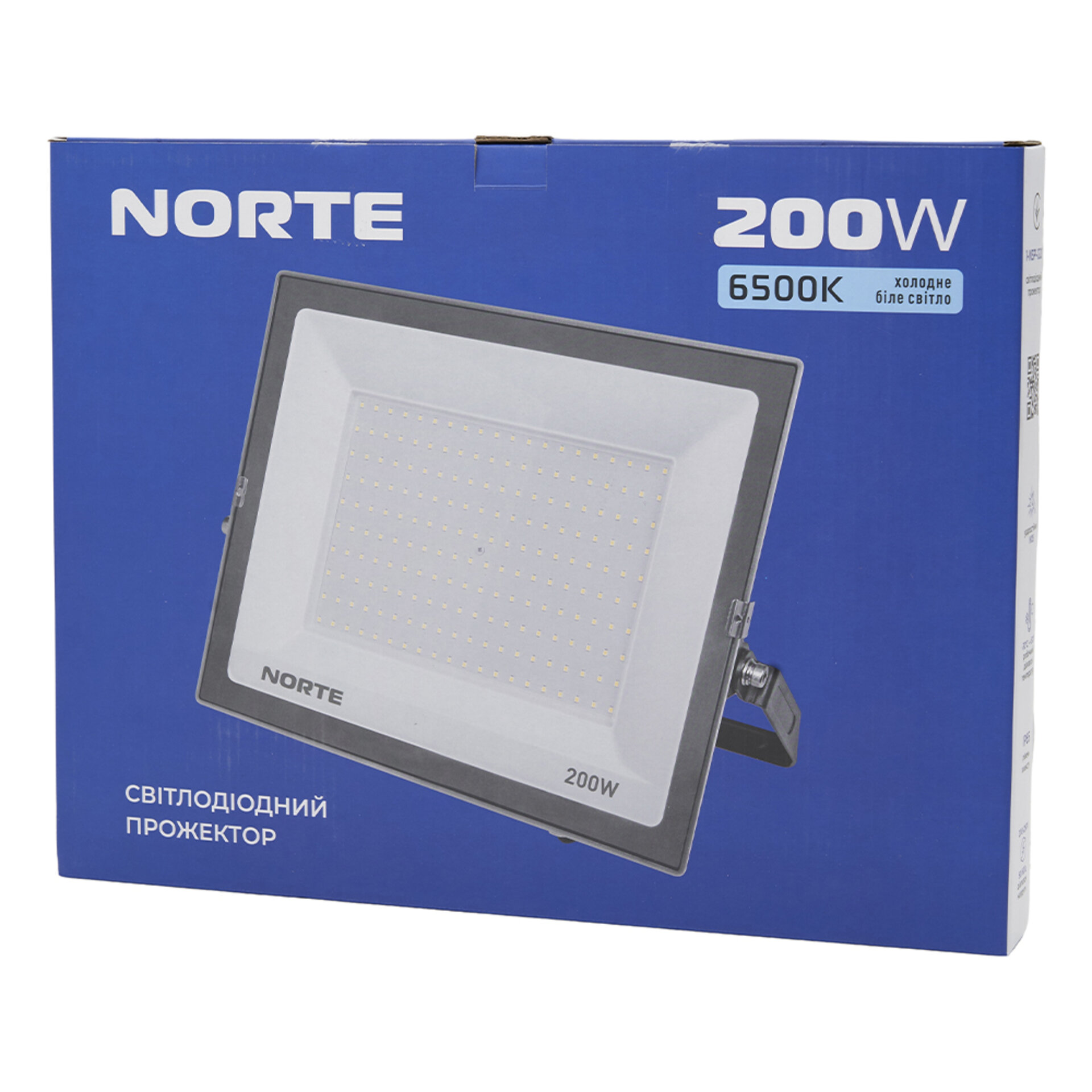 NORTE Spotlight 1-NSP-1220 — це професійний світлодіодний прожектор із потужністю 200 Вт та світловим потоком 17 350 люменів. Він поєднує високу яскравість, довговічність і стійкість до складних умов експлуатації, що робить його ідеальним вибором для освітлення великих промислових або відкритих зон.