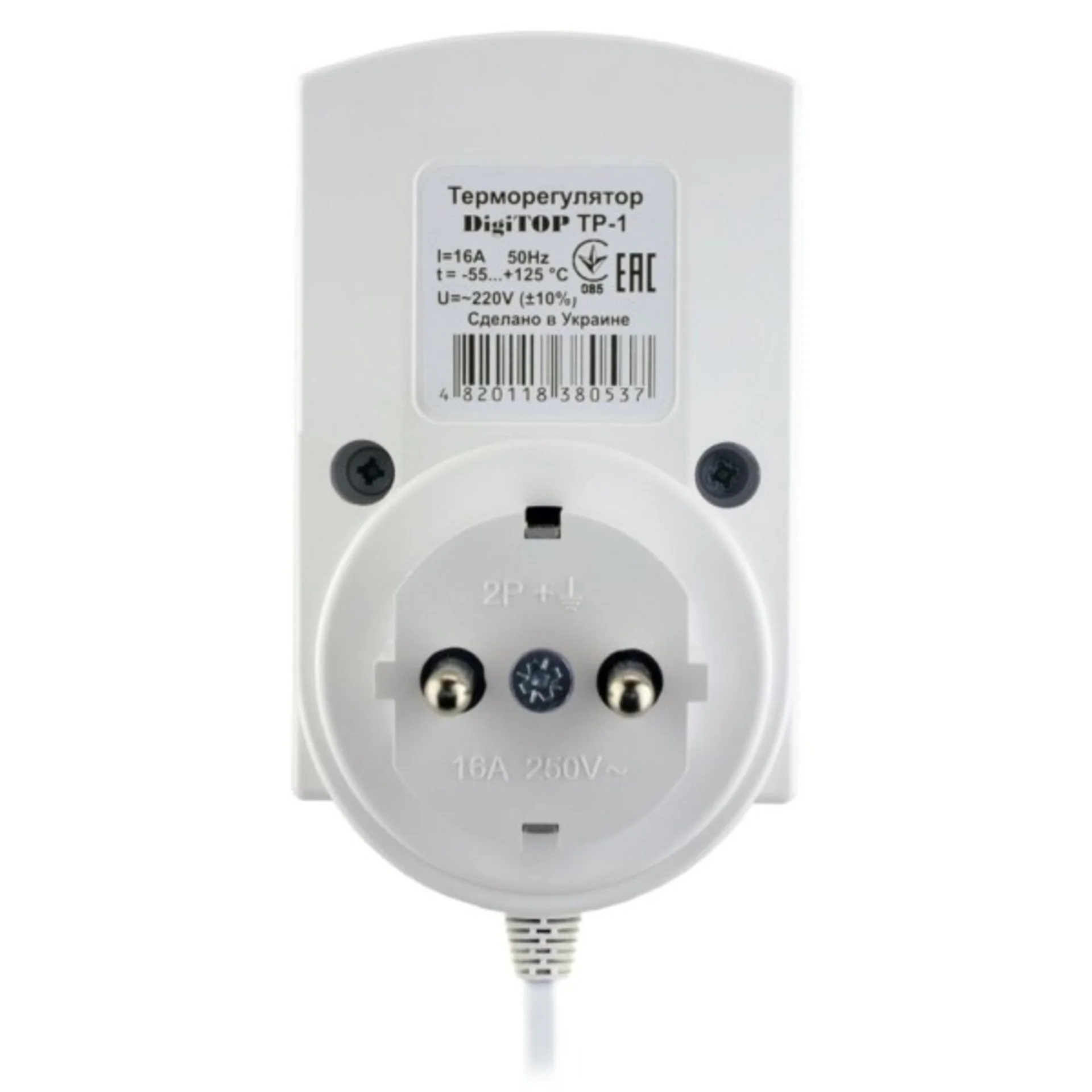 DigiTOP ТР-1 – універсальний терморегулятор, призначений для контролю і підтримки температури в житлових і виробничих приміщеннях. Ідеально підходить для управління роботою нагрівального або охолоджувального обладнання: конвекторів, масляних обігрівачів, теплових гармат, вентиляторів та інших пристроїв.