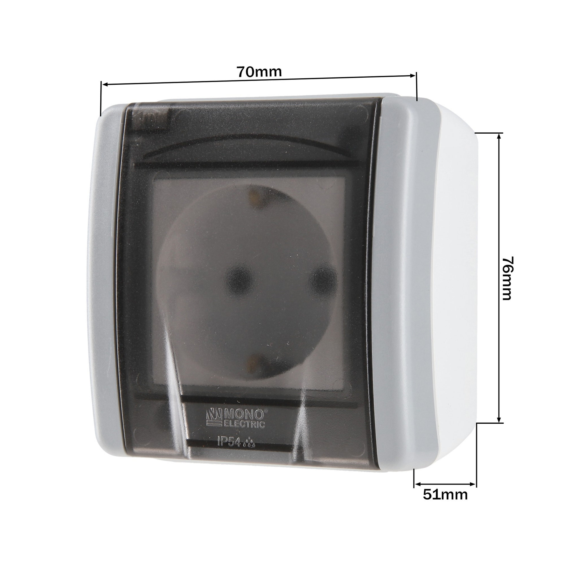 Mono Electric OCTANS IP54 – це надійна розетка з заземленням, призначена для зовнішньої установки. Завдяки високому ступеню захисту IP54, вона стійка до пилу та вологи, що робить її ідеальним вибором для використання на вулиці або у вологих приміщеннях.