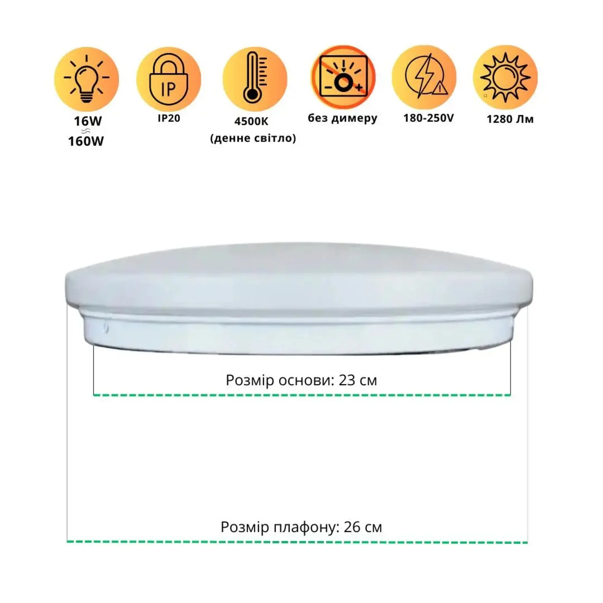 | Колір плафона | Білий матовий |
