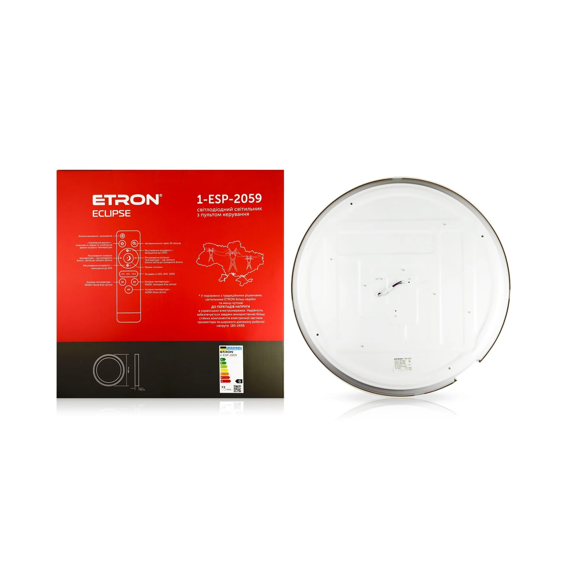 Окрему увагу привертає контурна підсвітка, яка робить світильник не лише функціональним джерелом світла, а й помітним елементом інтер’єру. ETRON Smart ECLIPSE — це вдалий вибір для тих, хто шукає сучасний світильник із пультом, стильним зовнішнім виглядом і зручним налаштуванням освітлення.