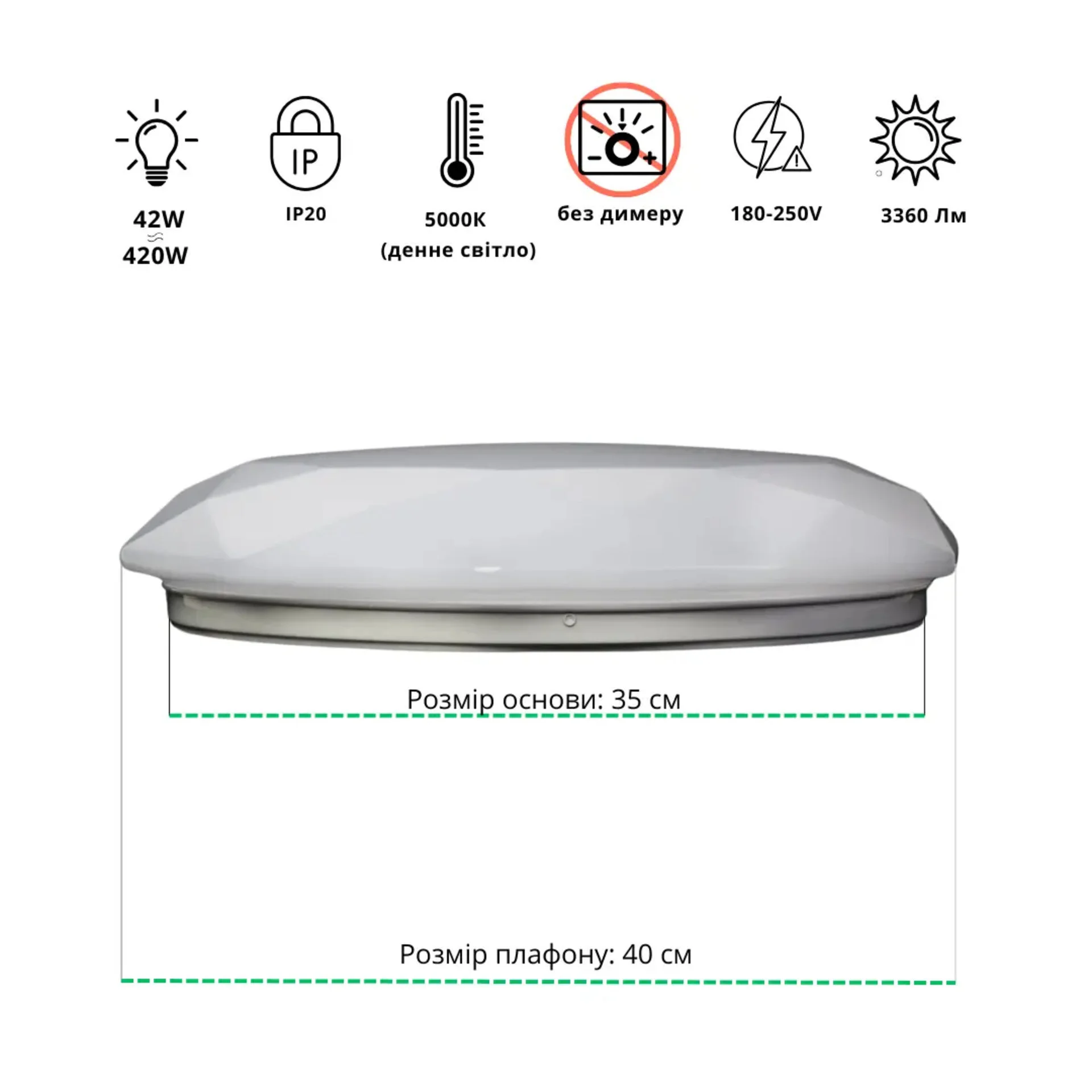 ULM-R02-S-350-42 – це сучасний світлодіодний стельовий світильник потужністю 42 Вт, який забезпечує рівномірне освітлення з колірною температурою 5000K. Ідеально підходить для офісних, житлових і комерційних приміщень.