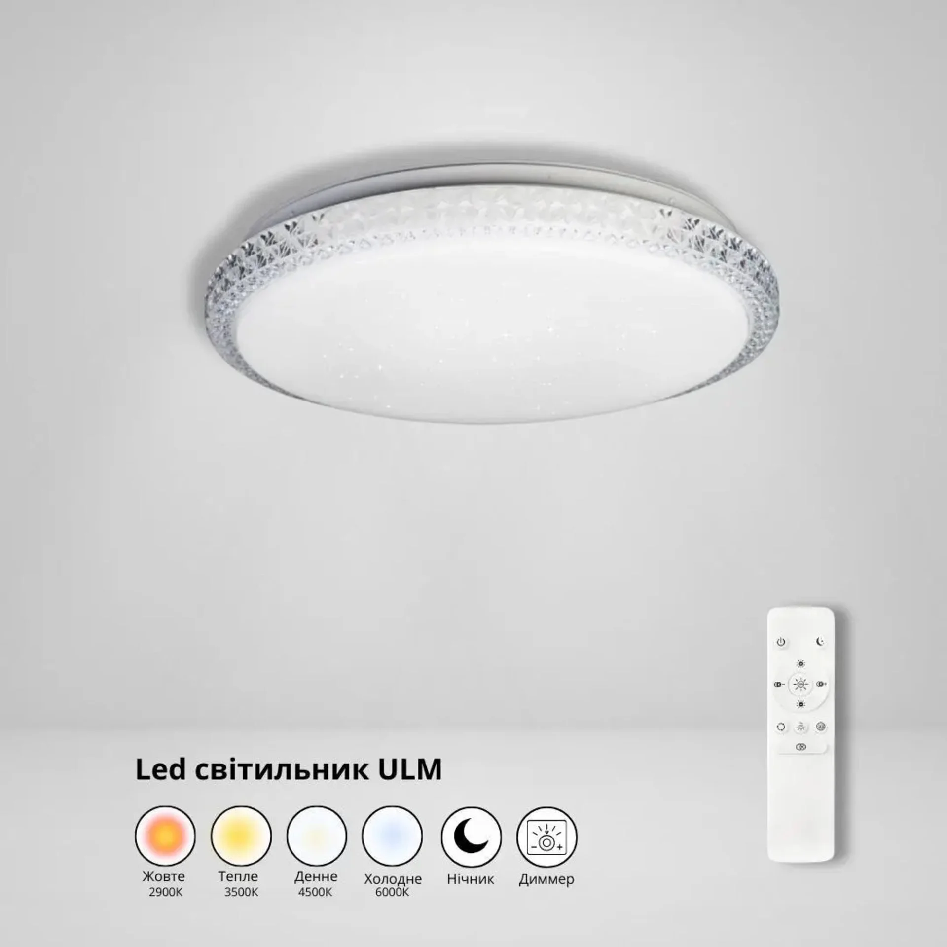 ULMS-R04-S-350-50-P1 – сучасний світлодіодний стельовий світильник із потужністю 50 Вт та регульованою колірною температурою від 2900K до 6000K. Завдяки пульту дистанційного керування можна змінювати яскравість та температуру світла для створення комфортного освітлення.