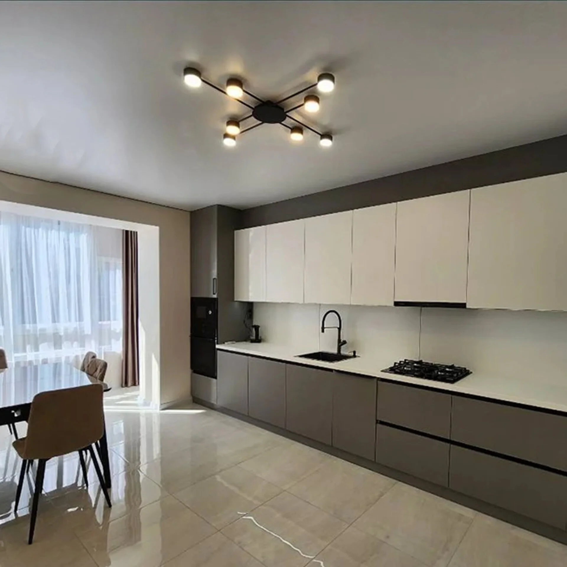 Стельовий світильник ETRON Radiant – це поєднання стильного дизайну, надійності та високої функціональності. Завдяки 8 плафонам, цей світильник забезпечує рівномірне та яскраве освітлення, що робить його ідеальним варіантом для просторих приміщень.
