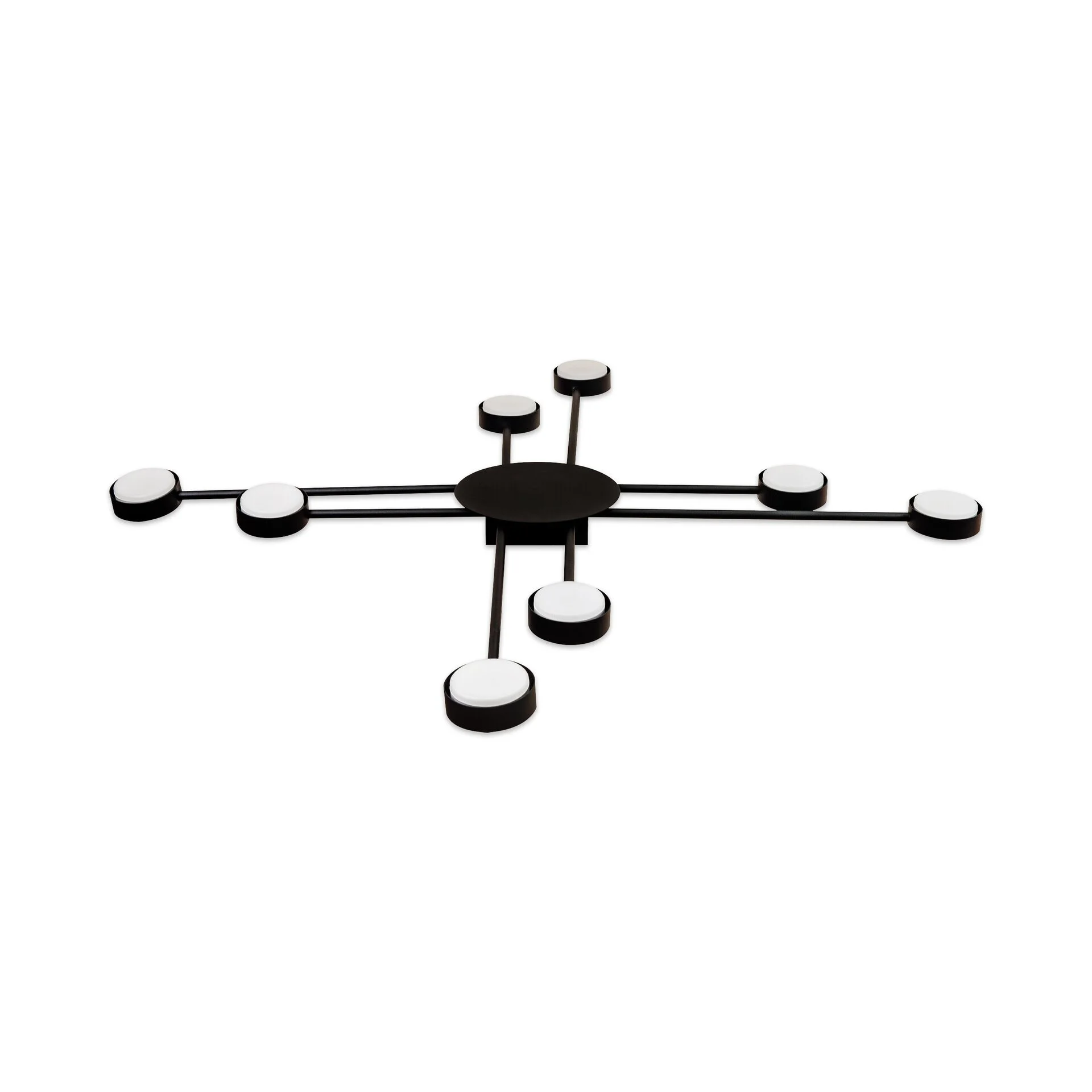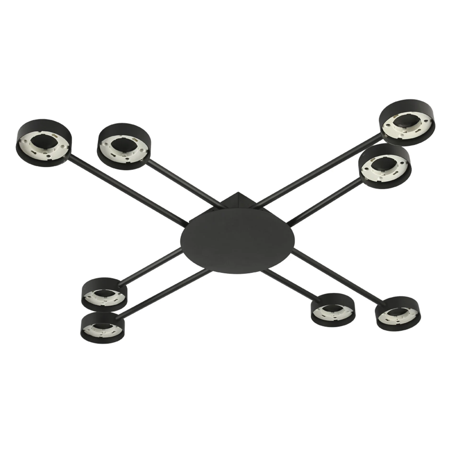Світильник ETRON Radiant GX53 8x15Вт у чорному кольорі — це поєднання сучасного стилю та високої функціональності. Завдяки восьми плафонам він забезпечує потужне і рівномірне освітлення навіть великих приміщень, створюючи стильний акцент у вашому інтер'єрі.