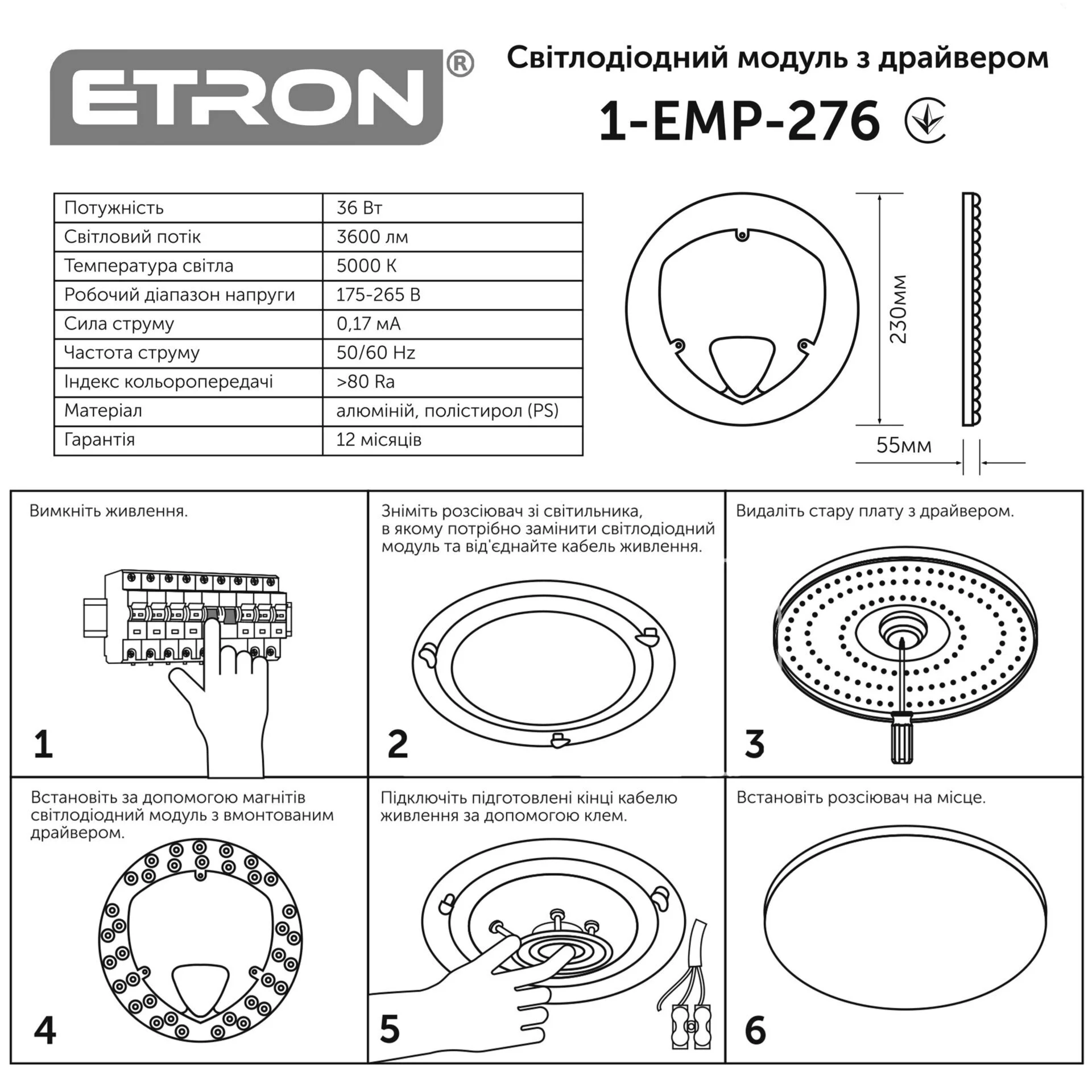 Обирайте ETRON 1-EMP-276 – ідеальне рішення для якісного та економічного освітлення вашого простору.