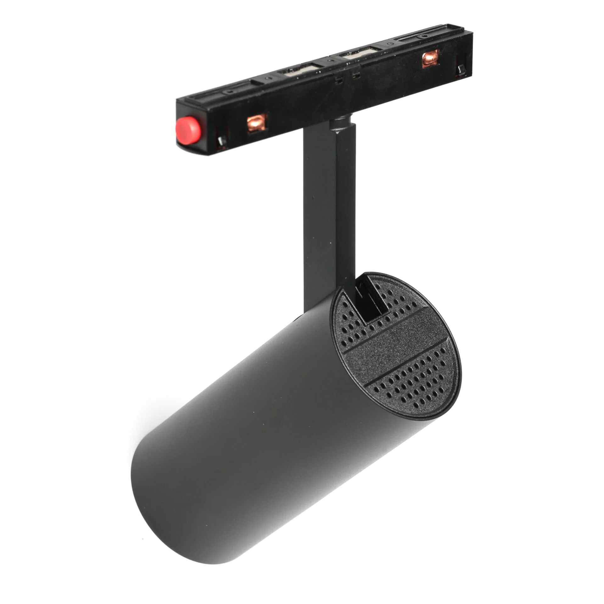 Міцний корпус з алюмінію та термостійкого пластику забезпечує довговічність і ефективне охолодження. Монтаж на магнітну трекову систему дозволяє швидко змінювати конфігурацію освітлення без інструментів, що особливо зручно для динамічних інтер’єрів або експозицій.