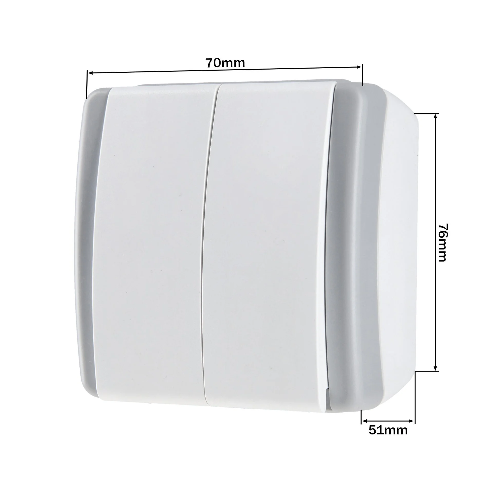 Mono Electric OCTANS IP54 – це надійний двоклавішний вимикач, призначений для зовнішньої установки. Завдяки високому ступеню захисту IP54, він стійкий до пилу та вологи, що робить його ідеальним для використання на вулиці або у вологих приміщеннях.