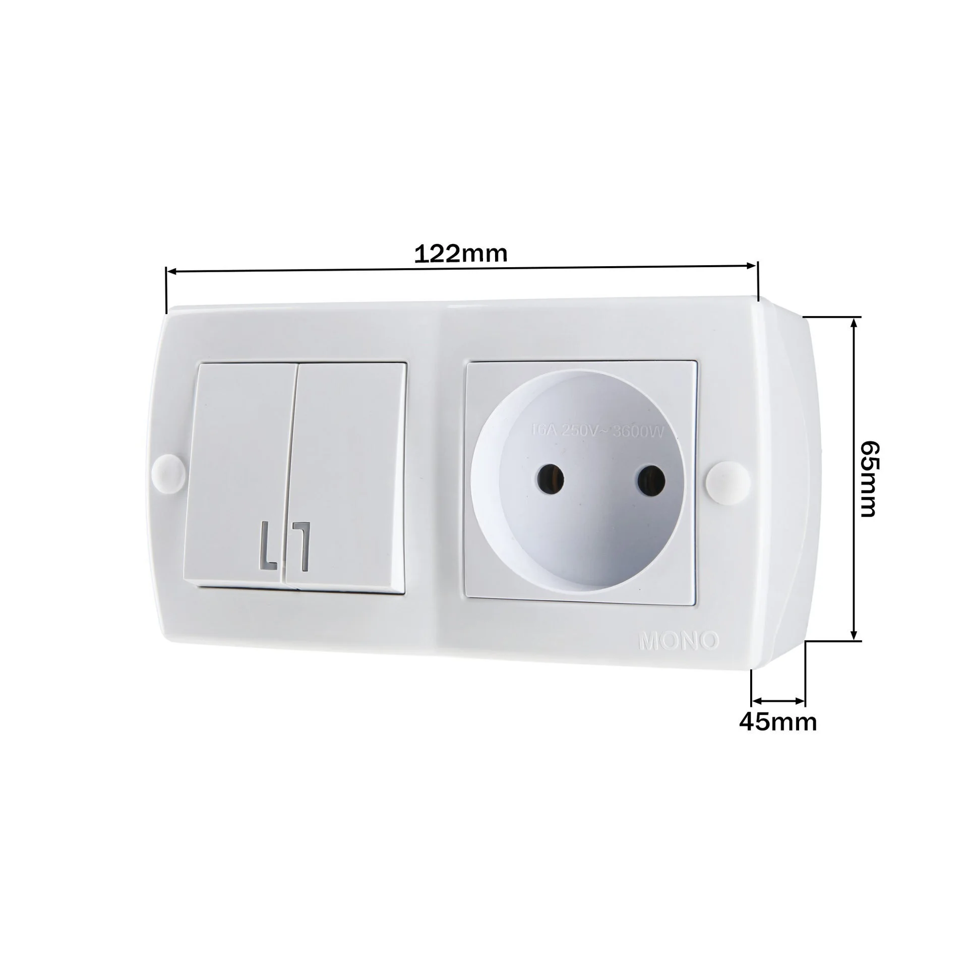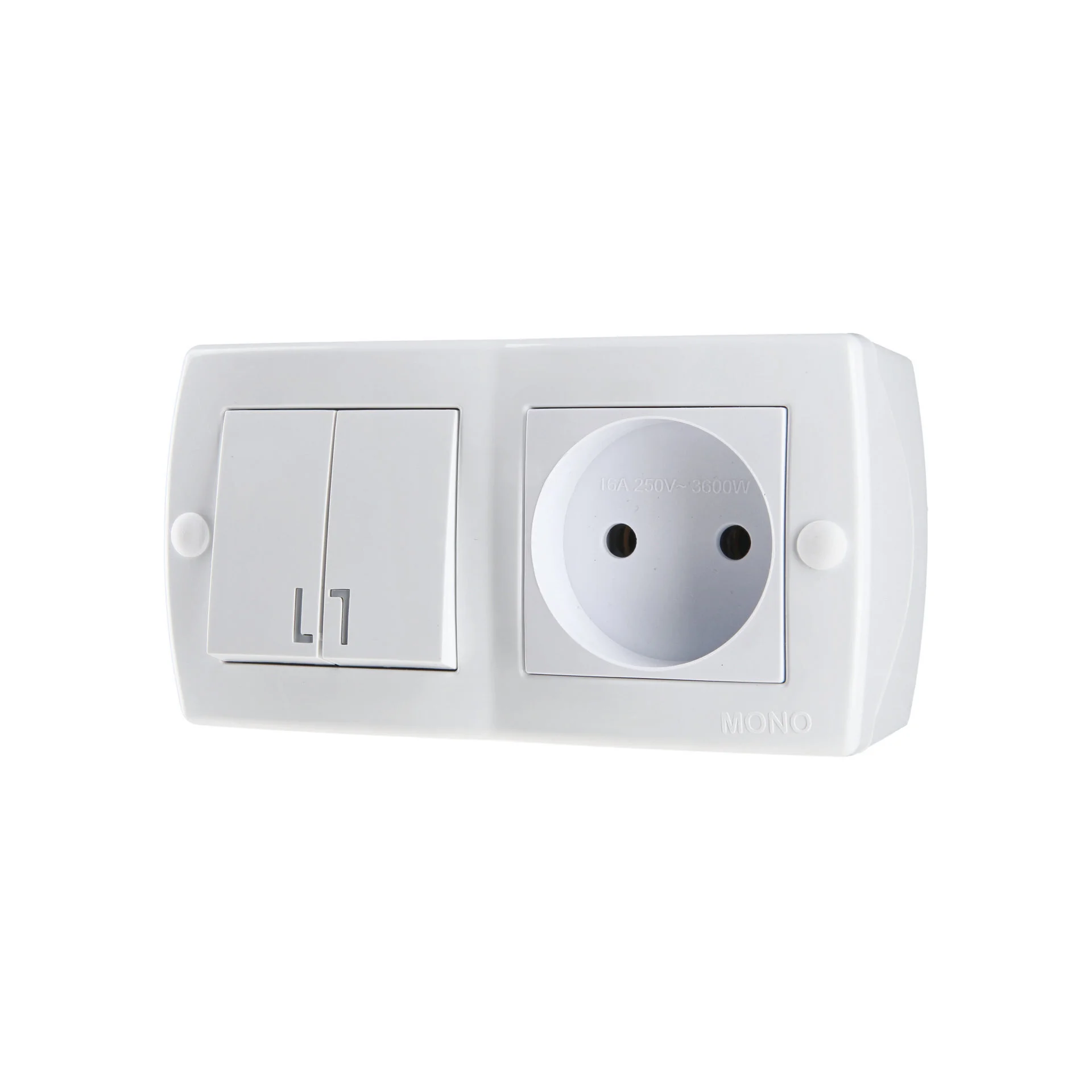 Вимикач двоклавішний + Розетка без заземлення Mono Electric OCTANS IP20 – це зручне рішення для керування освітленням у двох зонах та підключення електроприладів. Виконаний у білому кольорі, він гармонійно вписується в будь-який інтер’єр, забезпечуючи естетику та функціональність.
